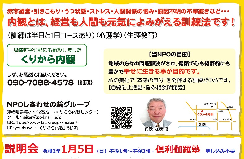 くりから内観とは、人間も企業も蘇る訓練法です。