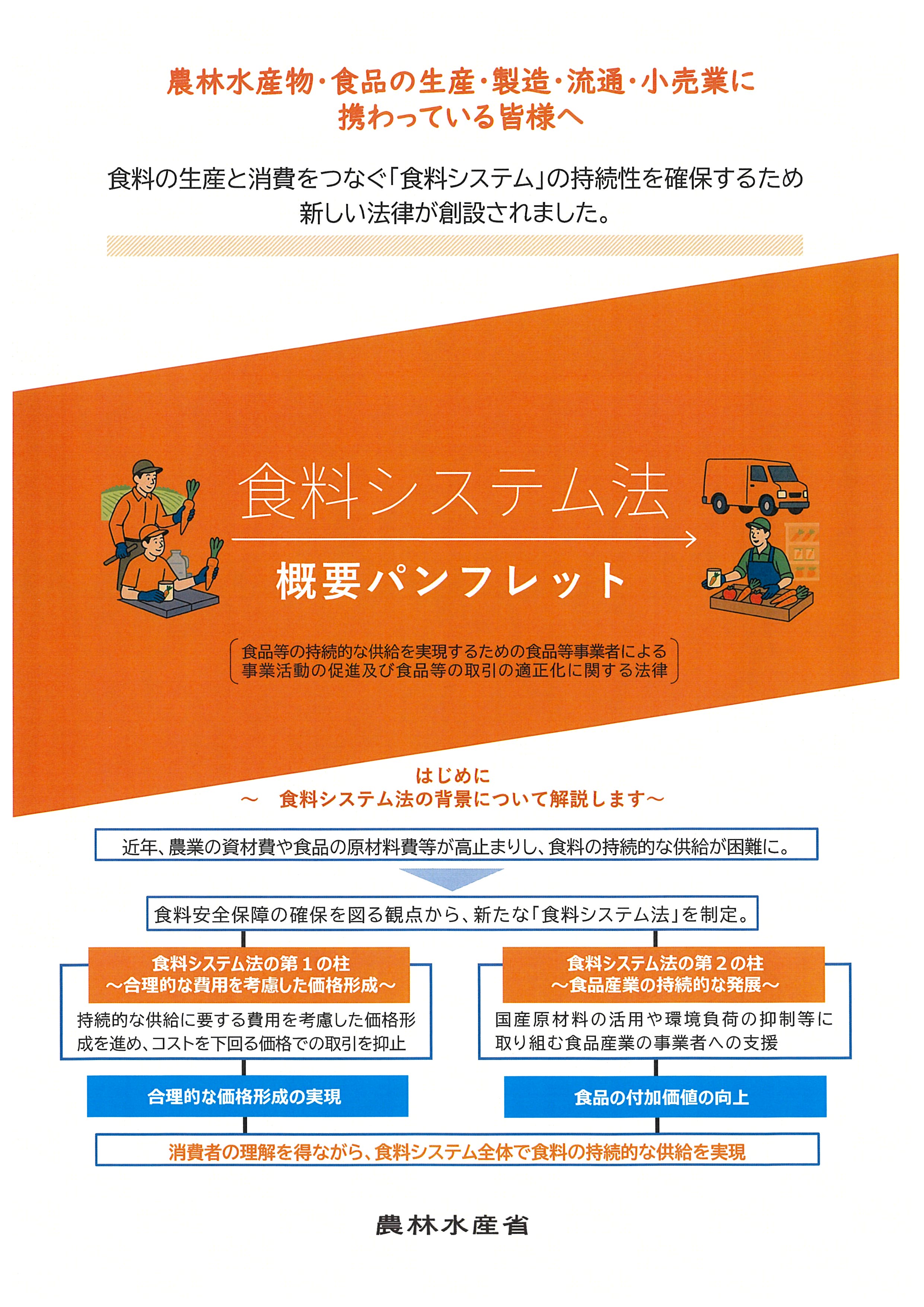 【農林水産省】食料の生産と消費者をつなぐ「食料システム」の持続性を確保「食料システム法」が令和8年4月1日全面施行予定!!