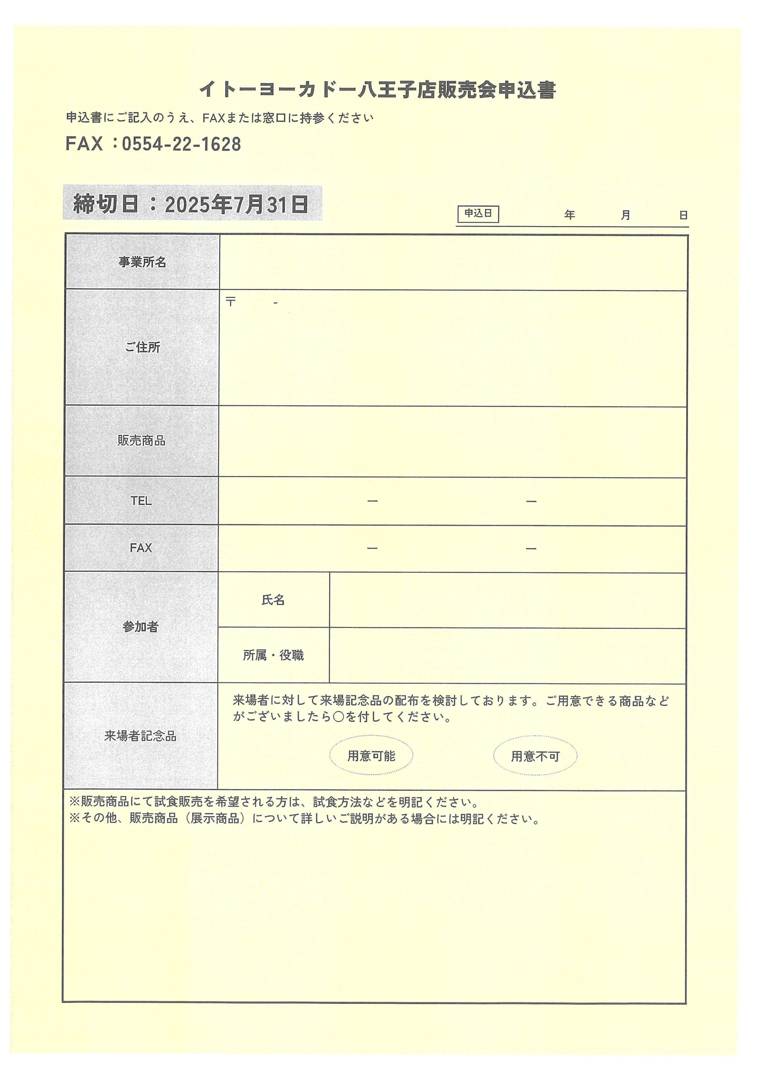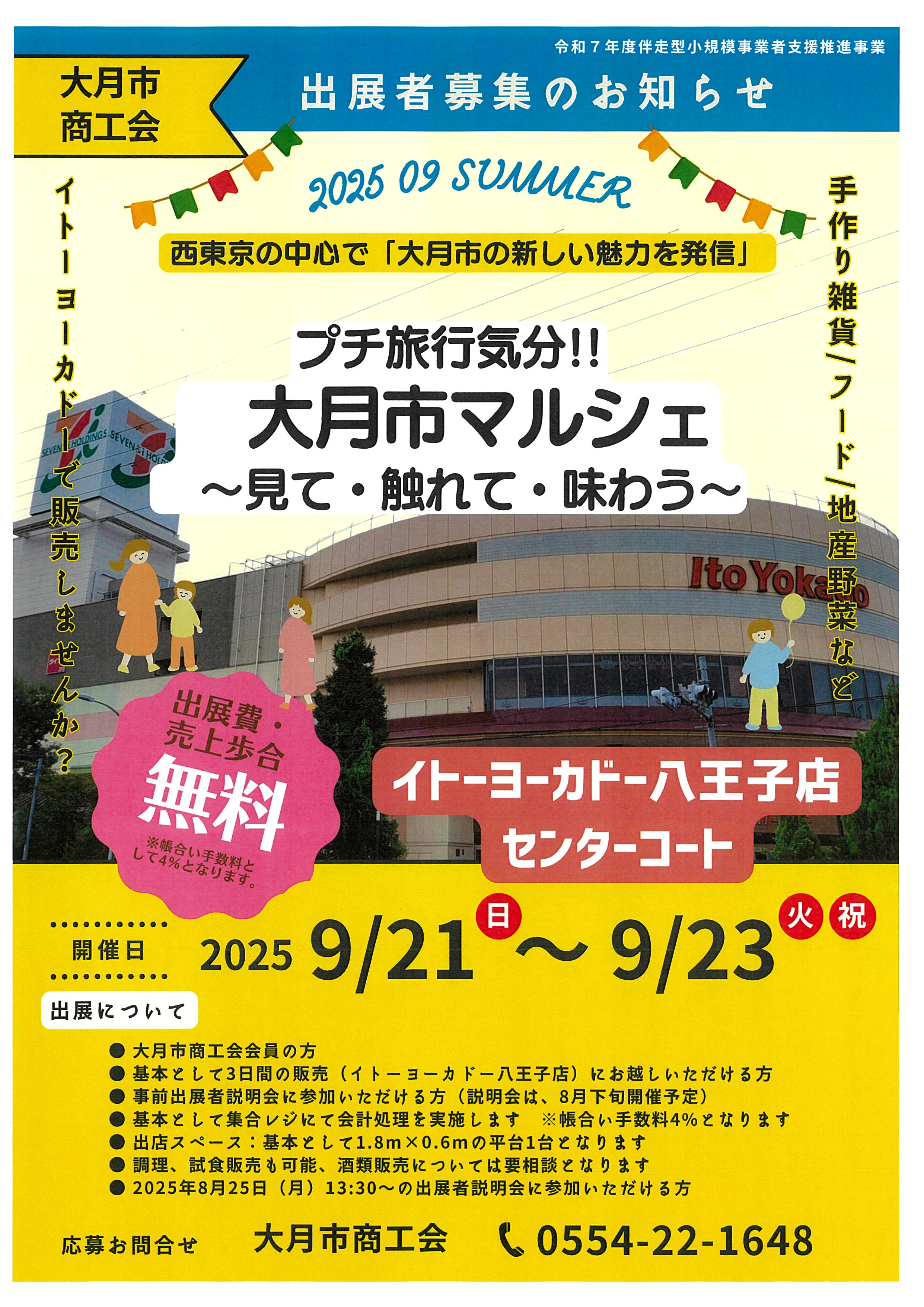 【伴走型】イトーヨーカドー八王子店「展示即売会」出展者募集についてご案内《商工会×観光協会×ヤマフジ×富士地域商社》 大月市商工会 ☎22-1648
