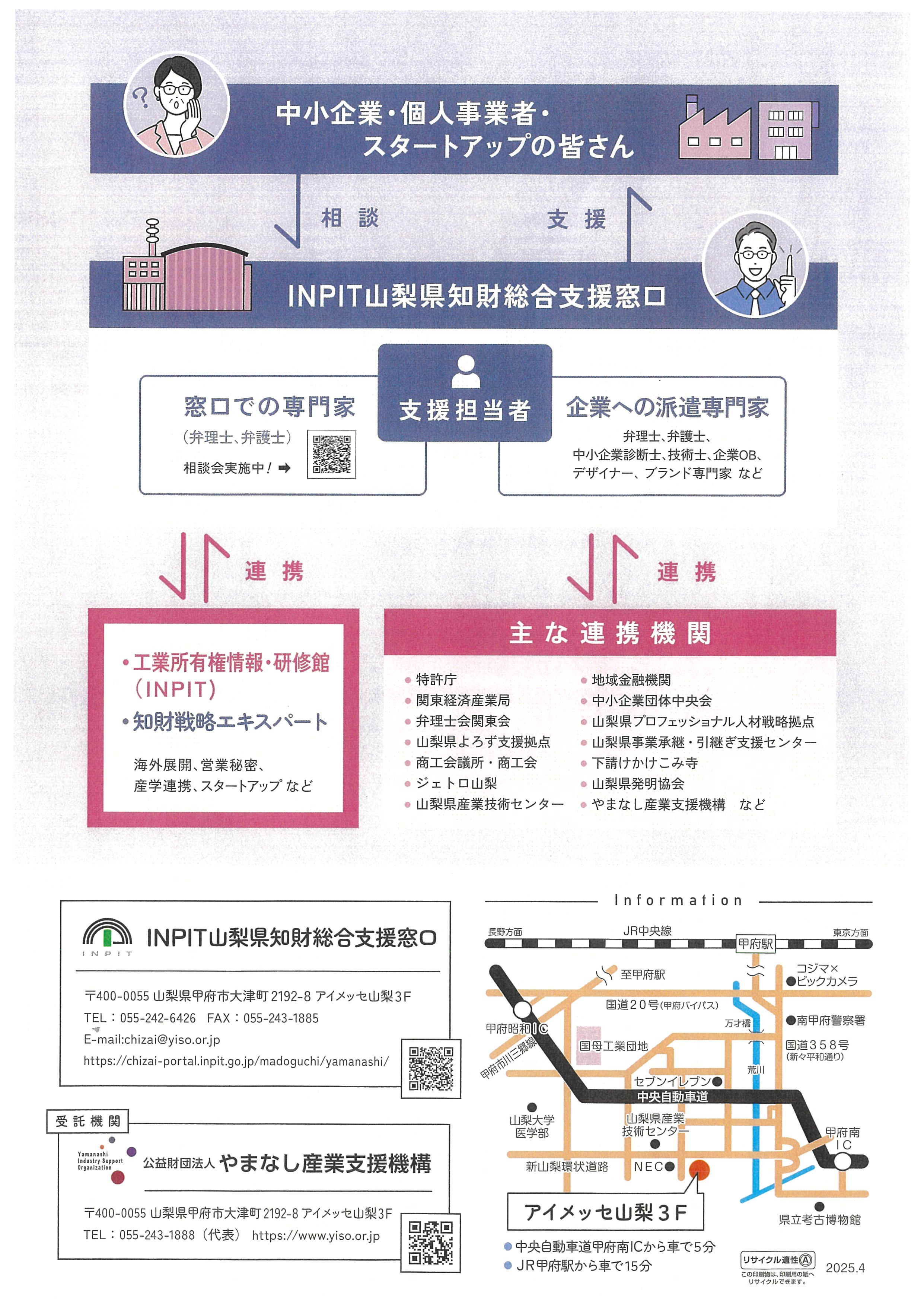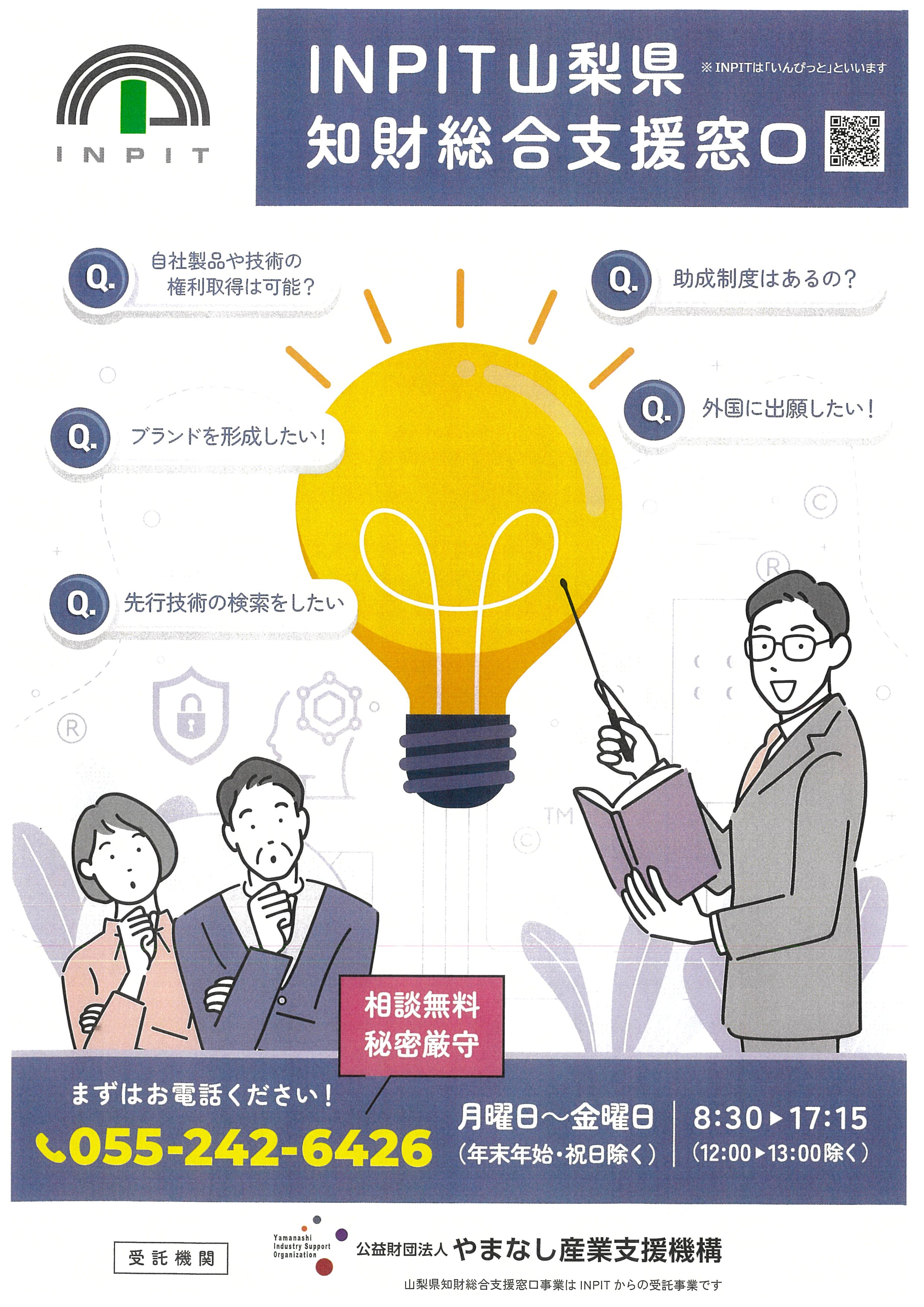 【情報提供】INPIT(インピット)山梨県知的財産総合支援窓口についてご案内 まずはお電話ください。☎055-242-6426 【相談無料・秘密厳守】