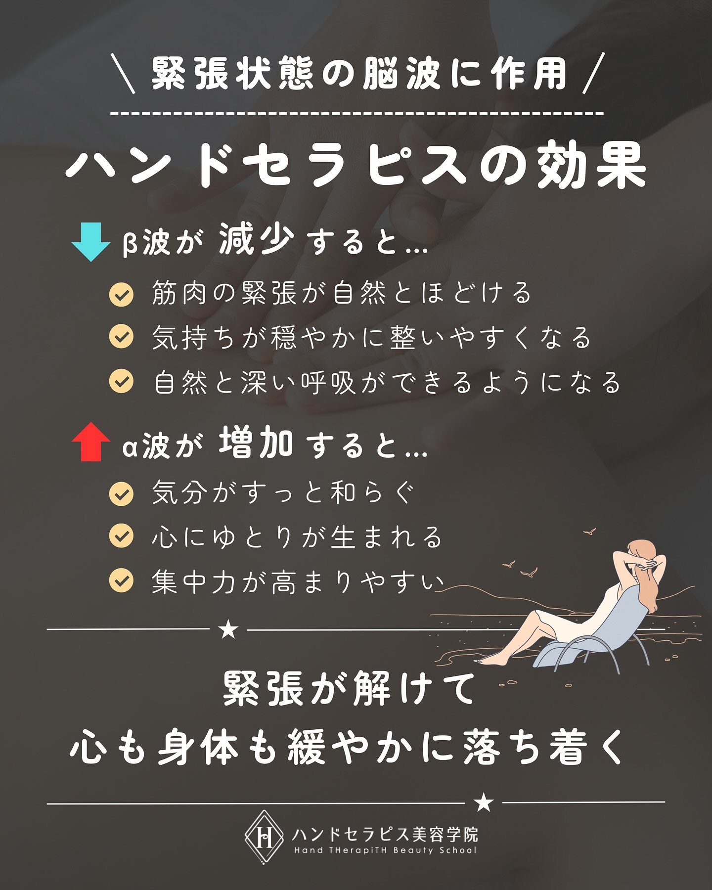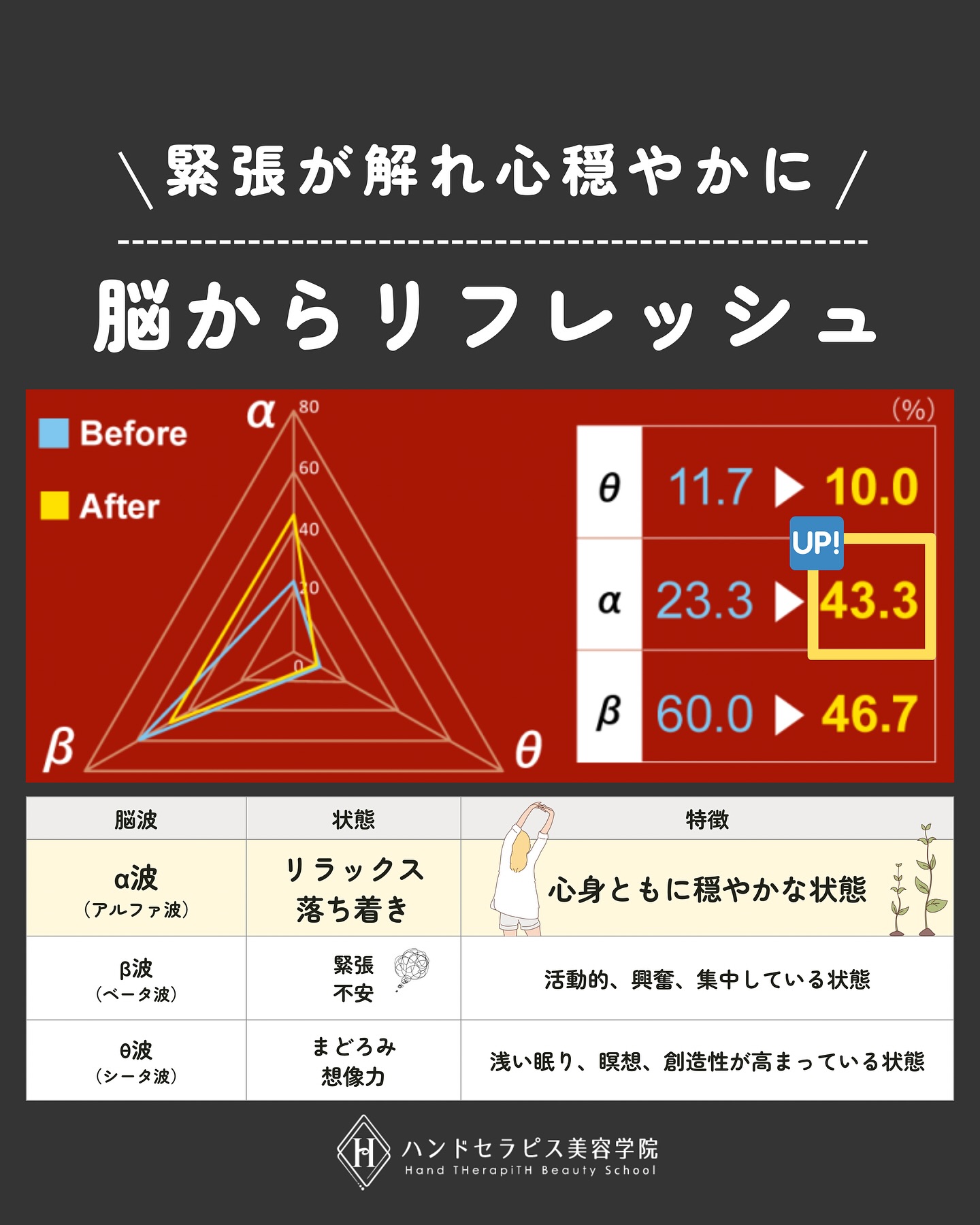 ハンドセラピスでは、リラックス中の脳波(α波)は、穏やかで集中しやすい状態を作り、穏やかさを自然に引き出すサポートをします。