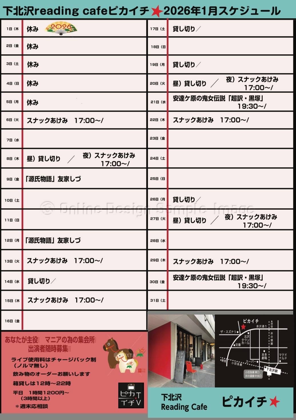 芝居、音楽、ダンス等にお使い頂けます