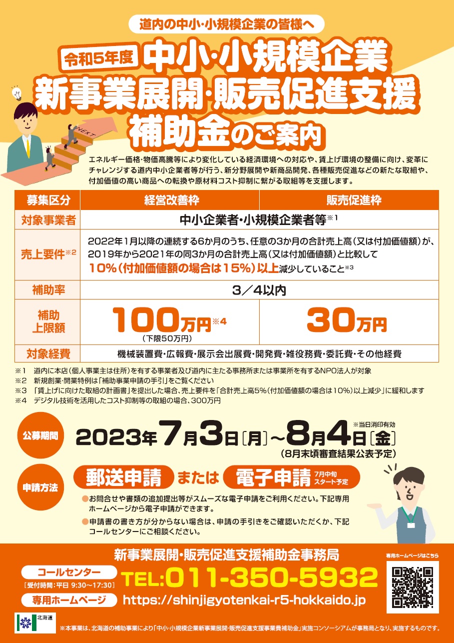7/3(月)より令和5年度中小・小規模企業新事業展開・販売促進支援補助金の募集が開始されました。