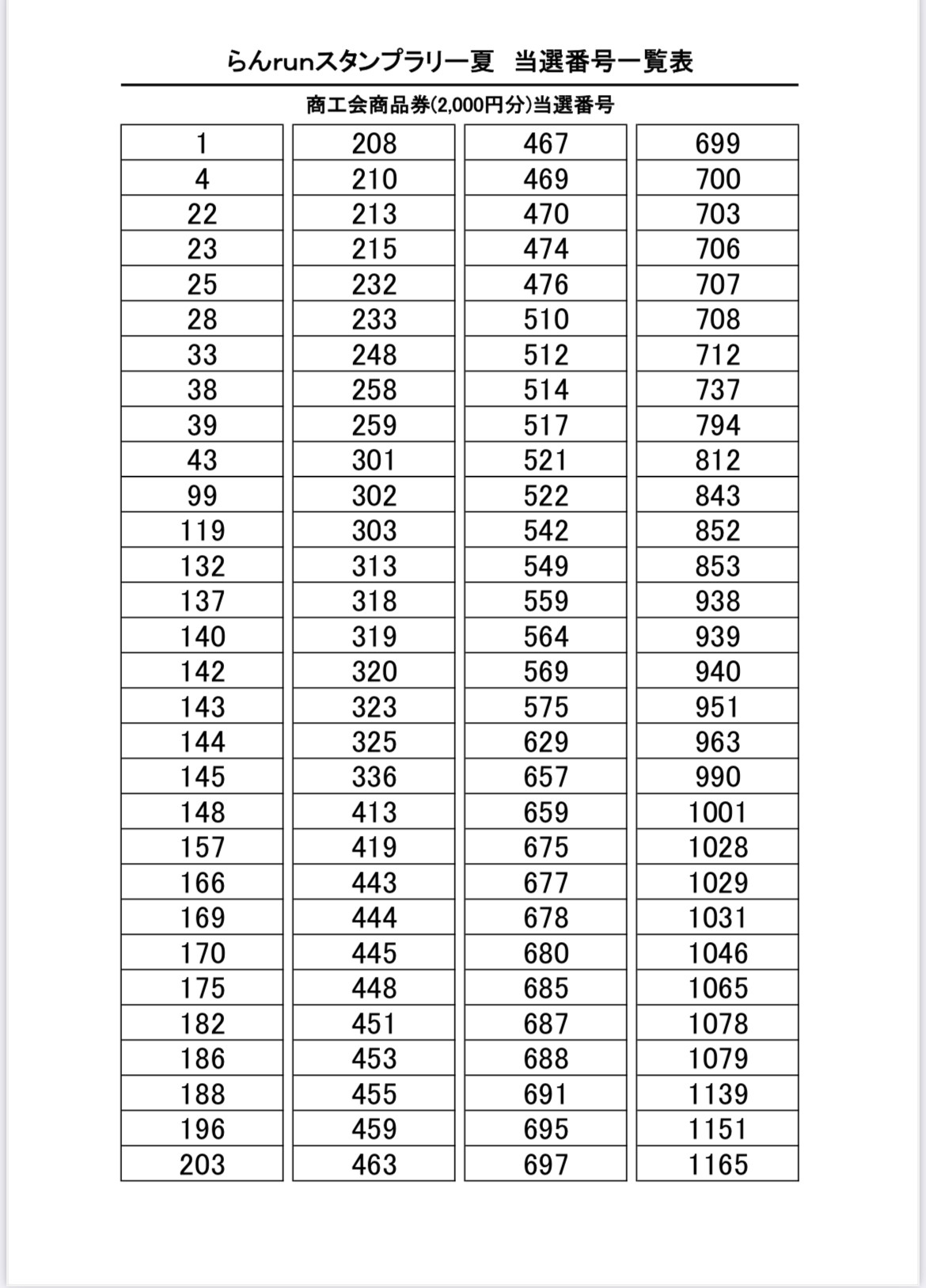 らんrunスタンプラリー夏 当選者発表のお知らせです。