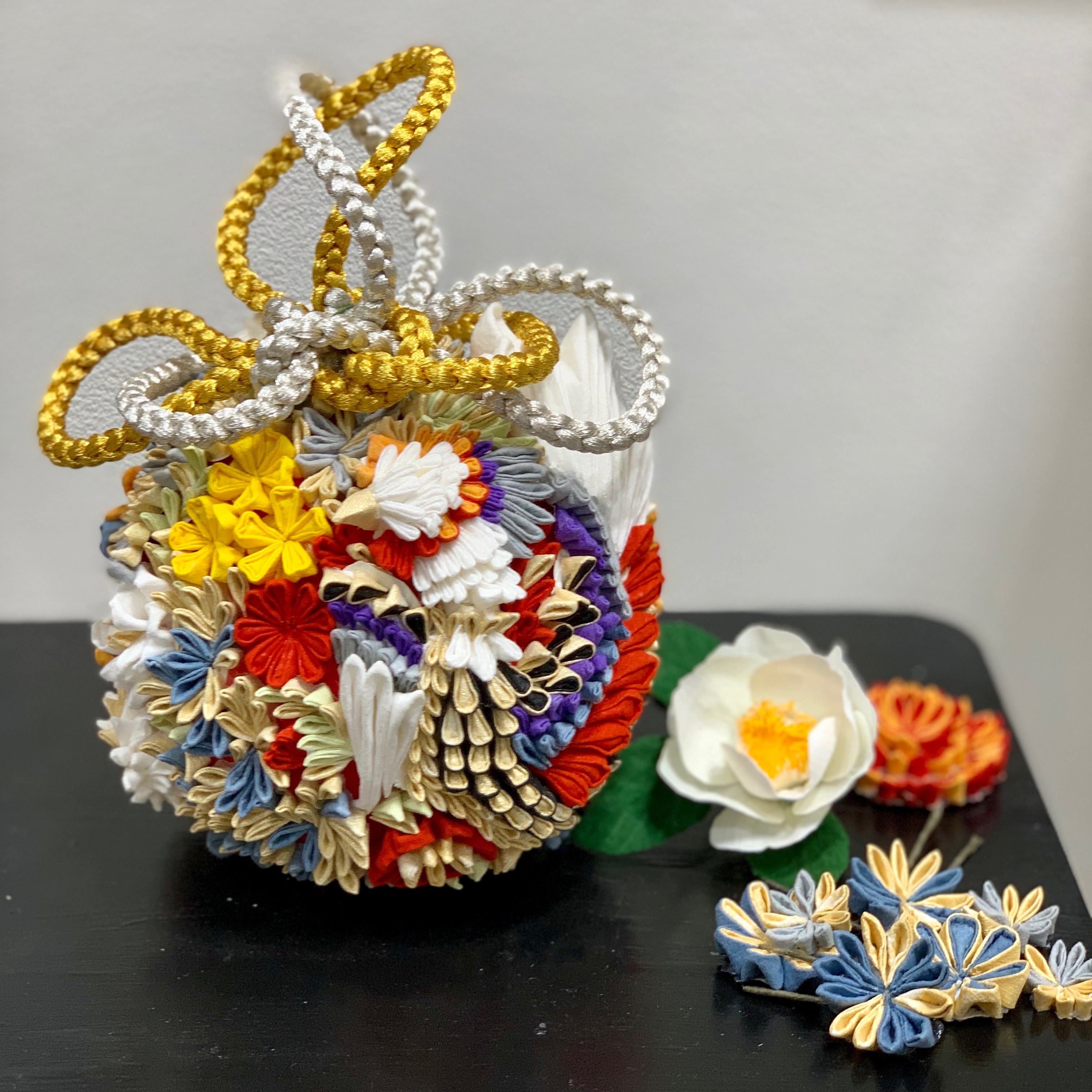 鳳凰をモチーフにしたつまみ細工ブーケ