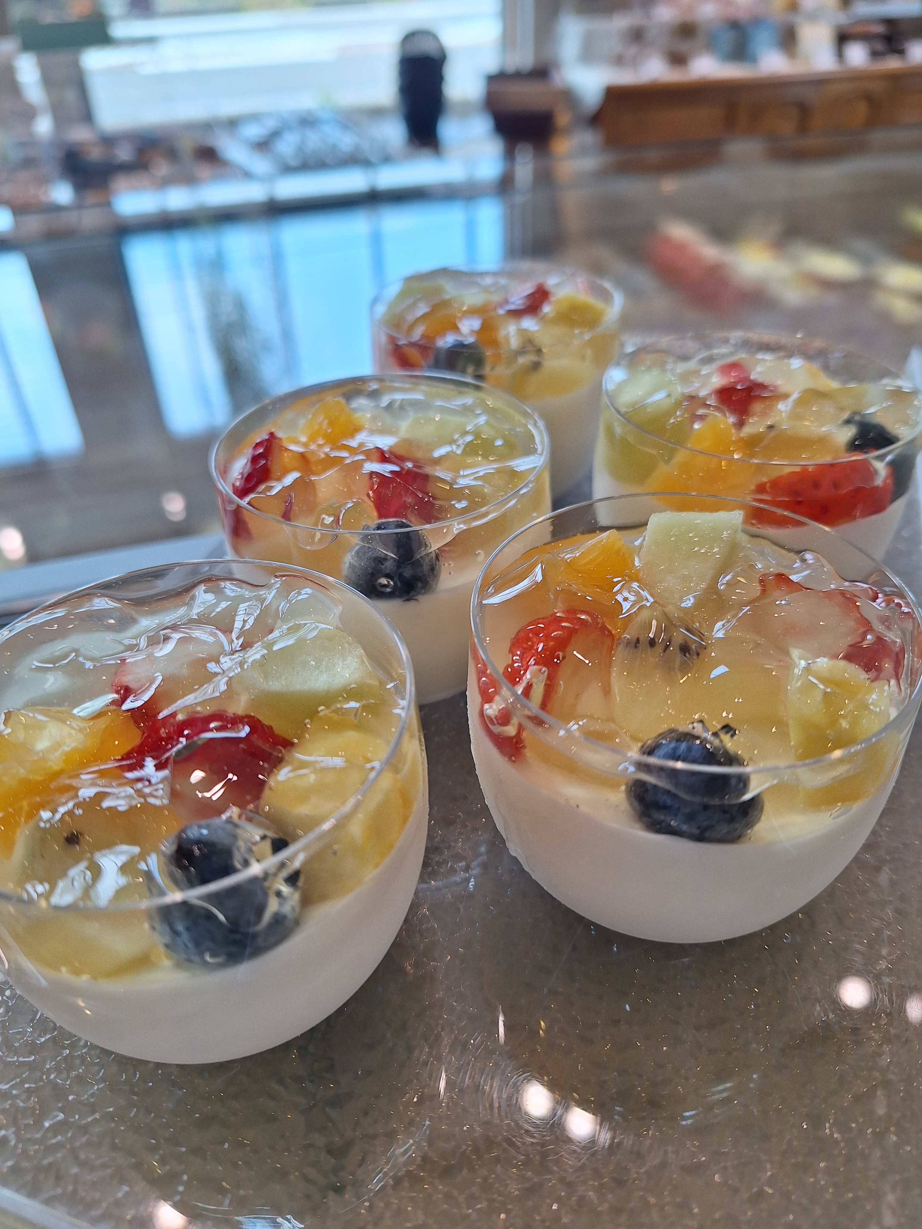 なめらかな杏仁豆腐にレモンジュレと季節のフルーツ