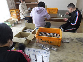 生活介護では自主生産活動でフェルトを使った小物つくり、下請作業でボルト組合せ、創作的活動として個人の興味や適正に合わせ様々な活動に取り組んでいます。