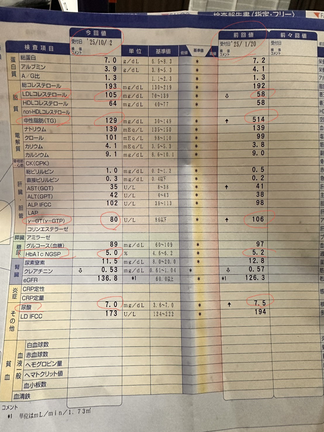 中性脂肪やγ-GTPの数値が以前より下がっていました。」