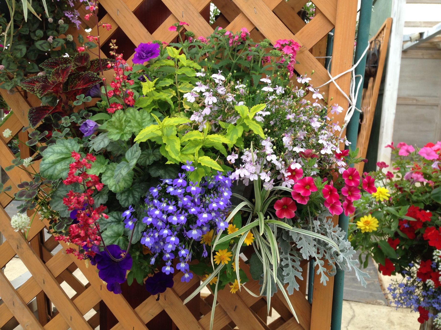 当店のハンギング教室は、花たちが伸び伸びと育つ植え方をしています。だから、最初はちょっと寂しいけど2週間もすればハンギングの形がよくなり、それから長く楽しめます。