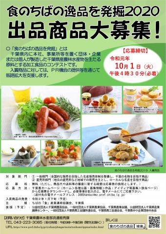 県とちばの「食」産業連絡協議会※1では、8月1日(木曜日)から10月1日(火曜日)まで、「食のちばの逸品を発掘※22020」の出品商品を募集します。