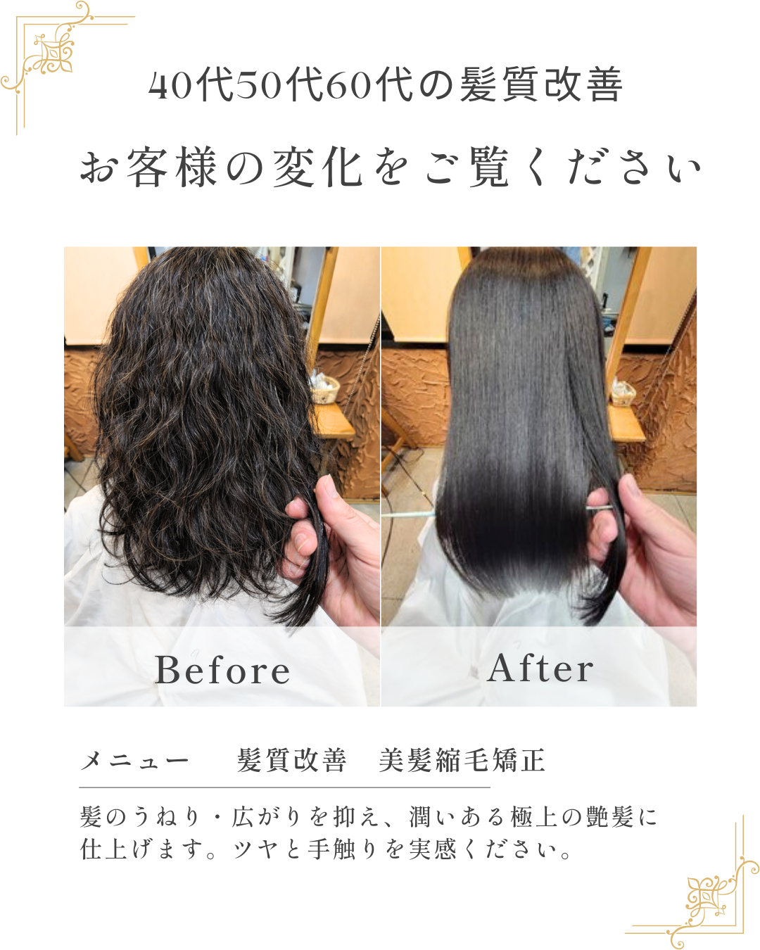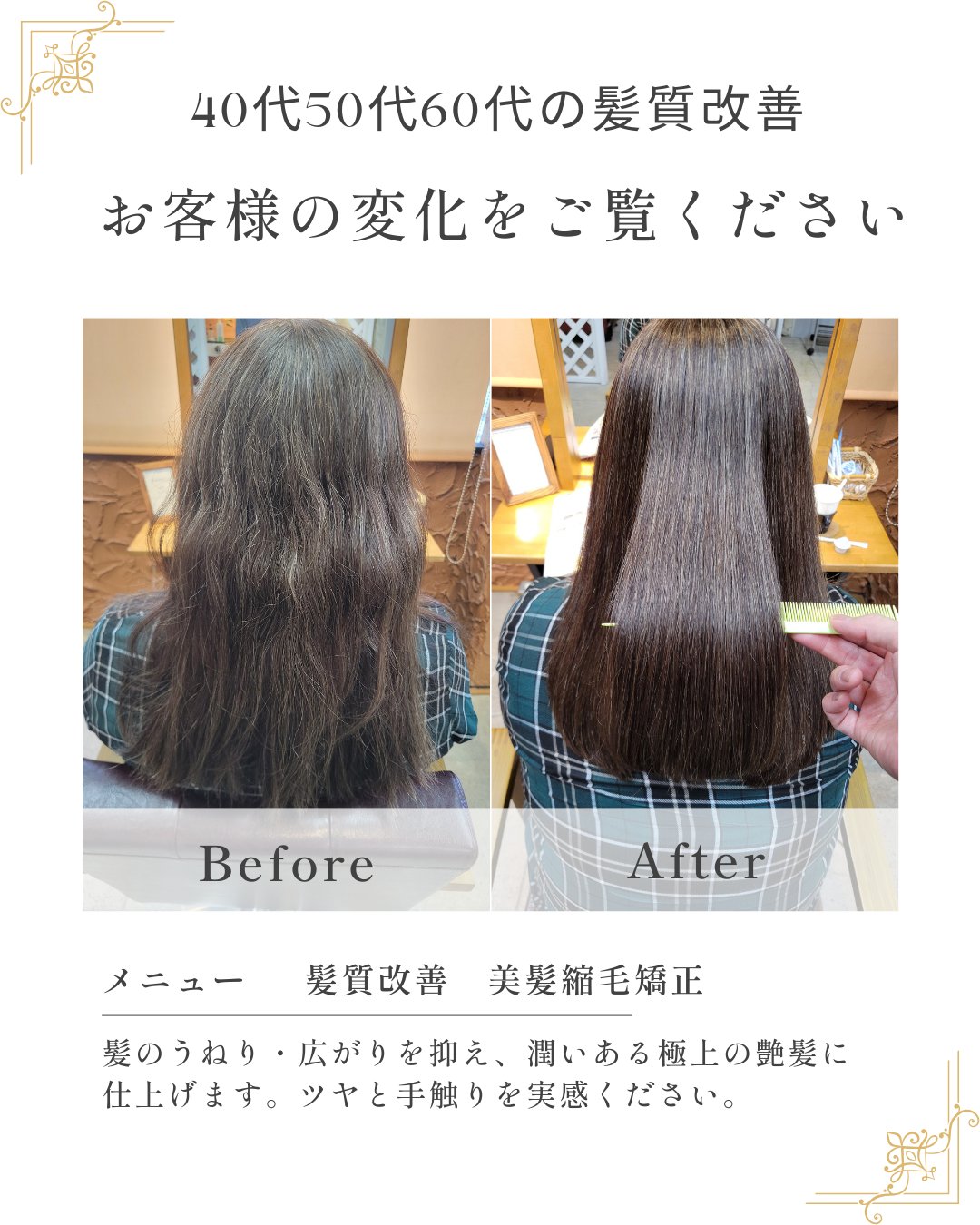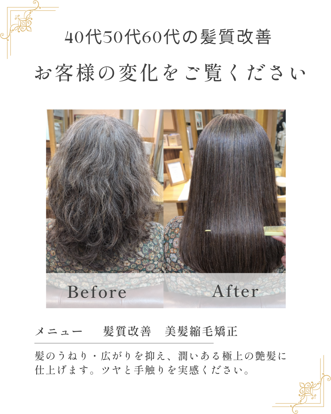 大人女性の髪の変化にも対応し、自然で若々しい美髪へ導きます。