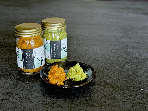 唐辛子の代わりに、足柄産ハバネロをメインに使った柚子胡椒です。