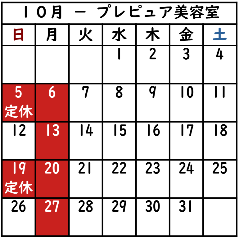 ・10月の営業日のお知らせ10月は通常通りに営業いたします(毎週月曜日 + 第1・第3日曜日が定休となります)まだまだ暑い日が続いておりますので、皆様もご自愛くださ...