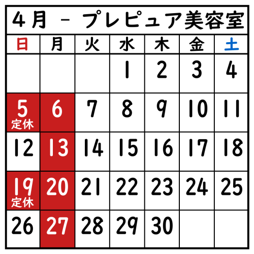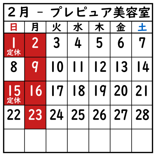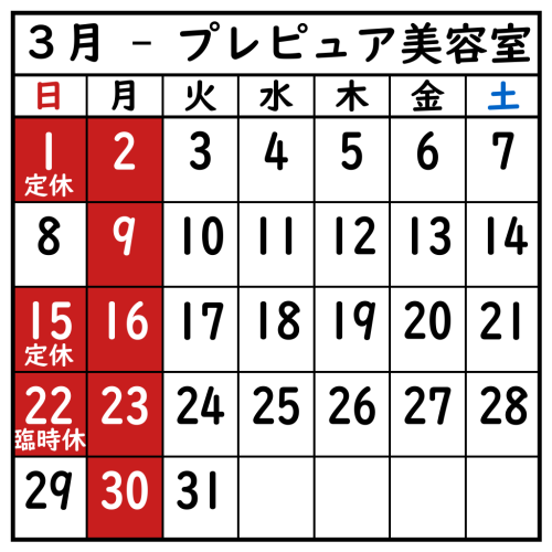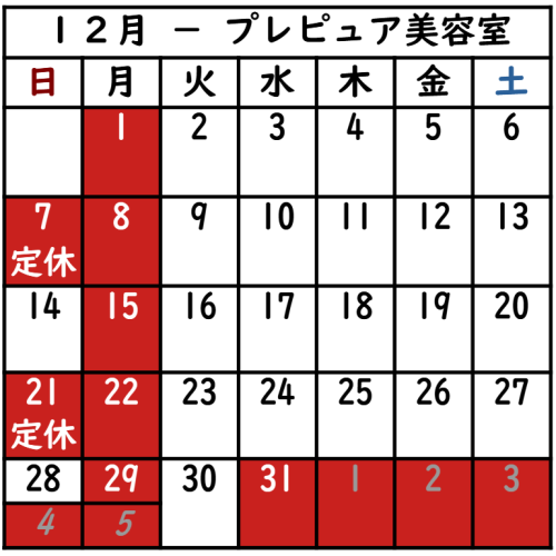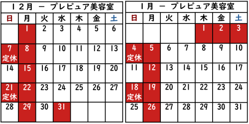 [プレピュア美容室] 年末年始の営業日のお知らせ