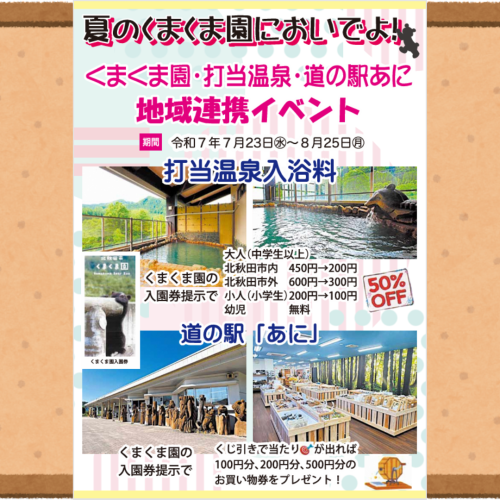 [道の駅あに・マタギの里] 【イベント・キャンペーン情報】くまくま園夏休みイベントに合わせて連携企画を行います!