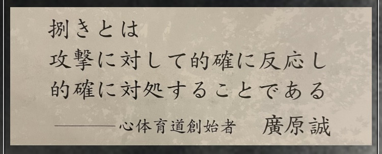 心体育道は、身を護る技(護身術)の習得を目指した武道です、自ら他者を先に攻撃する動作を無くし、他者からの攻撃に反応し、対処することを追求しています。