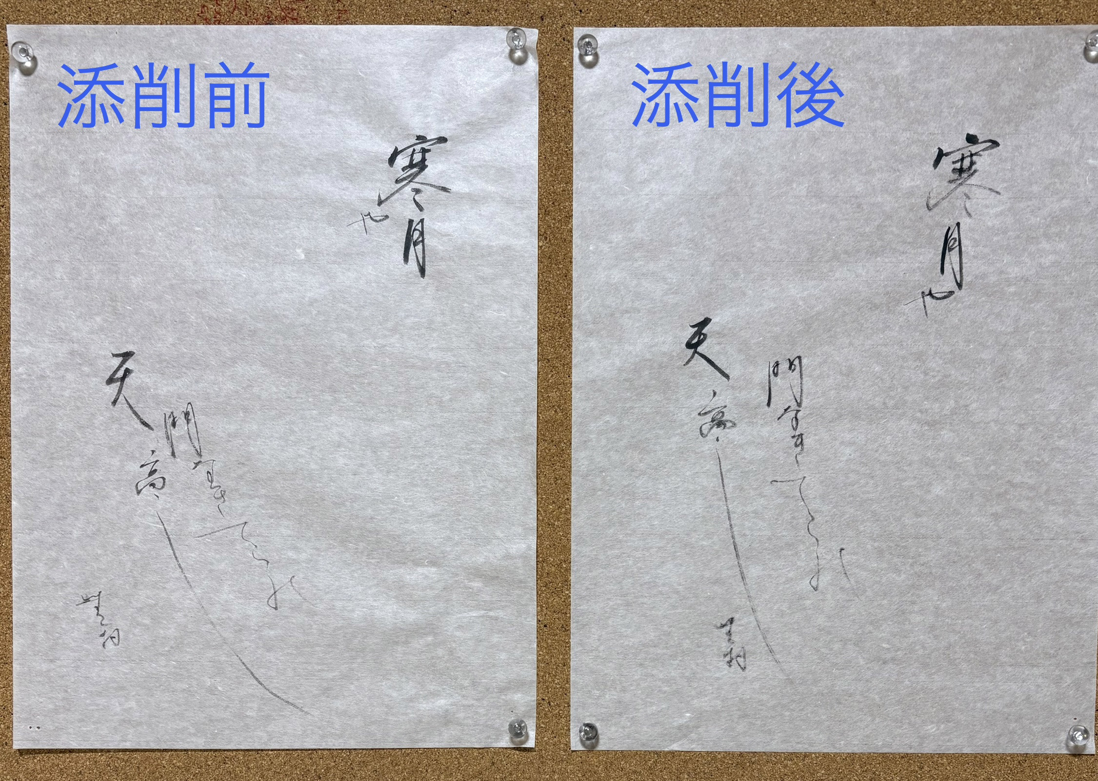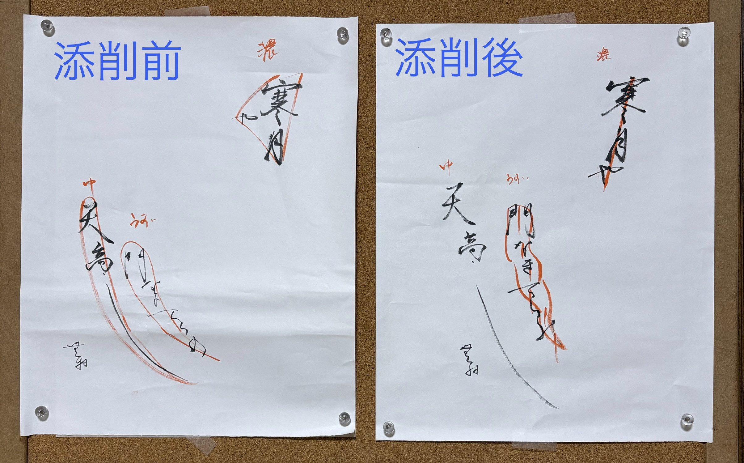 ・ただ、一つ一つの字の形は良かったです。左右不均一に出来ましたし、字軸をずらすことも出来ましたね。現代の美意識とは異なるものですので、古典の勉強を今後も頑張って続けましょう。