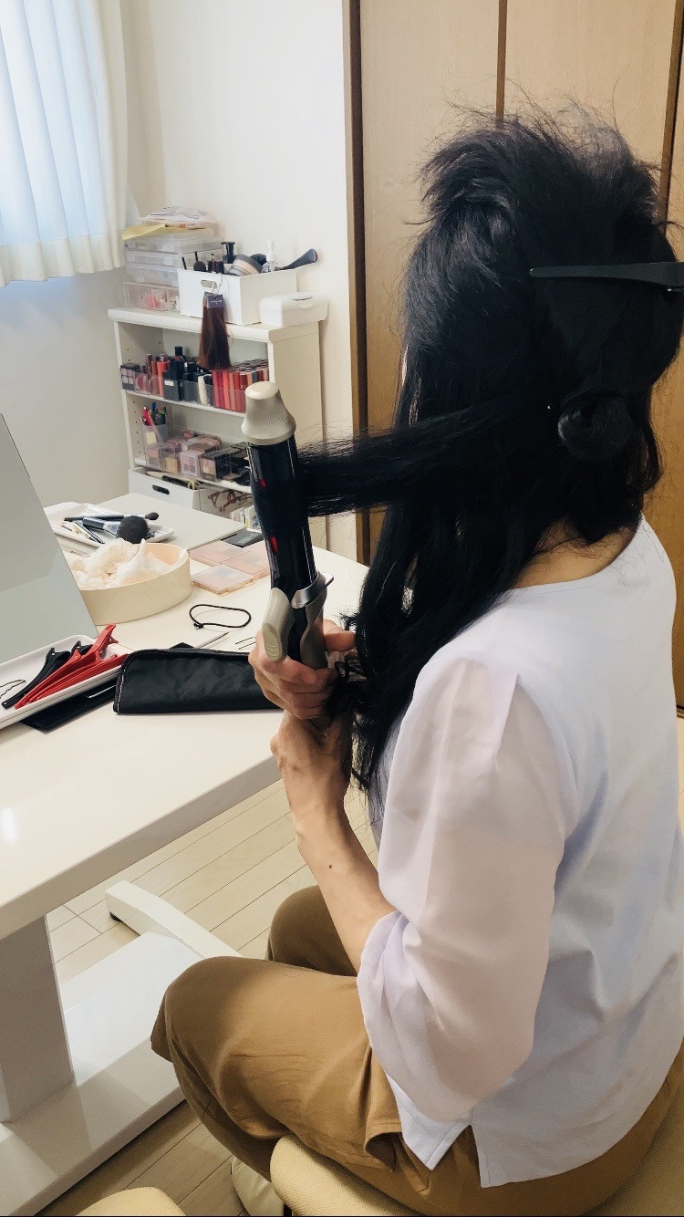 ・一旦真っ直ぐにアイロンを当てて、毛先から巻いて3秒待ったらクルクル縦に解きながらアイロンを外す