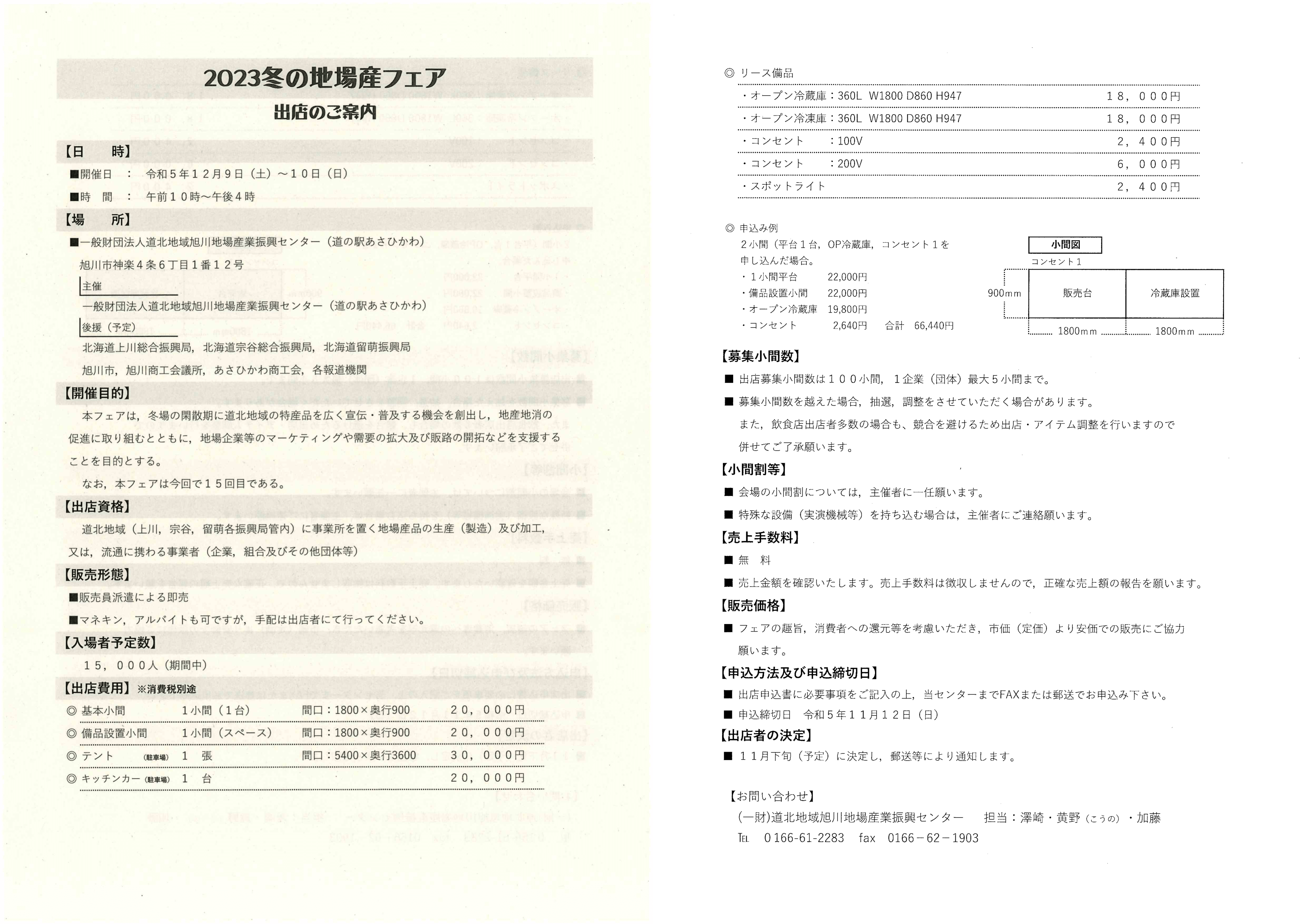 出店内容及び申込は、別紙チラシにあるお問い合わせをご覧ください。