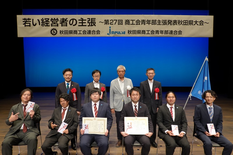 主張発表には、県北、中央、県南の各ブロックから各2名ずつ、計6名が出場し、由利本荘市商工会青年部の鈴木貴大 氏が最優秀賞に選出されました。