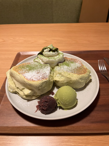 濃厚な抹茶アイスと生クリームに抹茶そのものをかけています