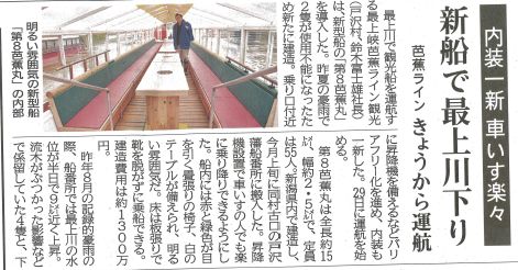 「第8芭蕉丸」が新しくなったことは、地元新聞にも大きく取り上げていただきました。(記事は2019年4月29日の山形新聞より)