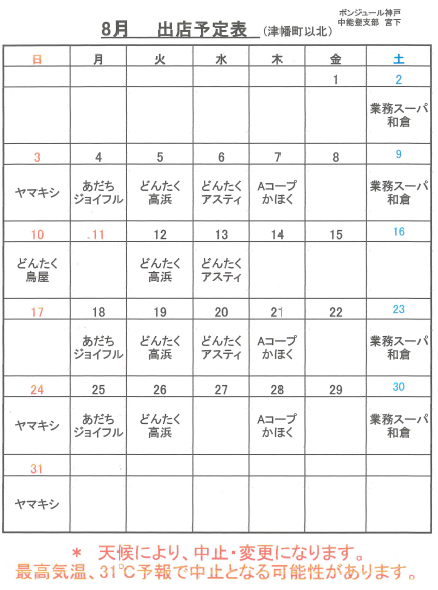 令和7年8月の出店予定です。