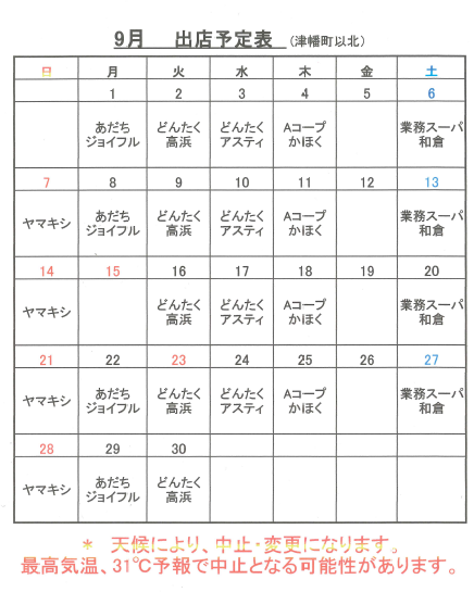 令和7年9月の出店予定です。