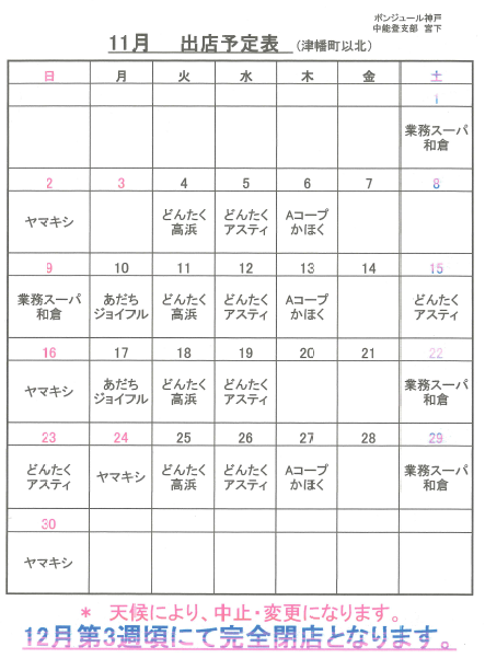 令和7年11月の出店予定です。