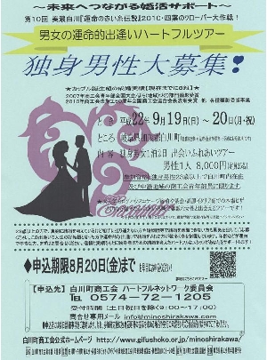 中濃地区内独身青年部員参加者募集!男女出逢い1泊ツアー