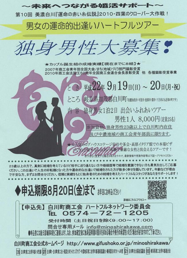 中濃地区内の各商工会独身青年部員の応募受付を8月9日(月)