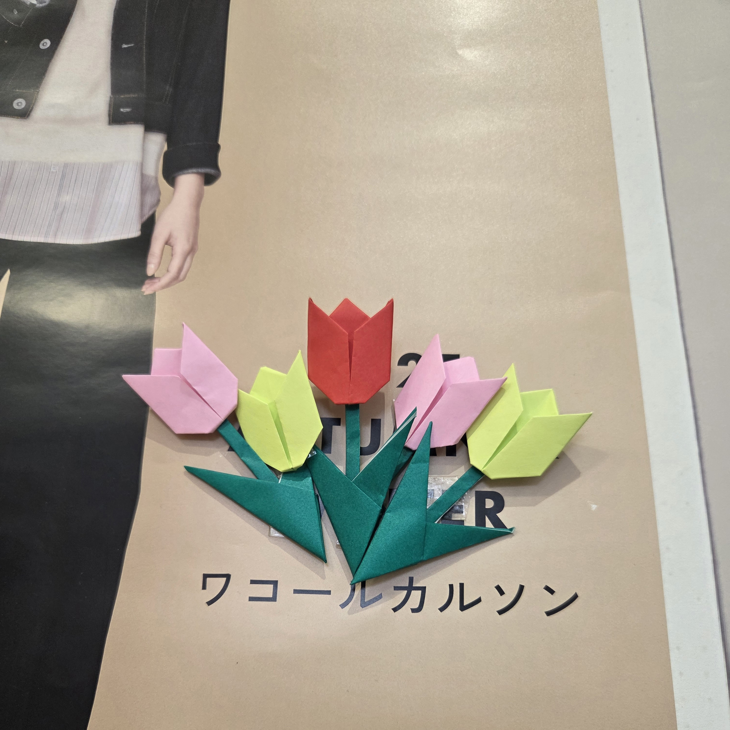 定番のポスターにチューリップの折り紙🌷こんな工夫と心遣いが大好きです😆