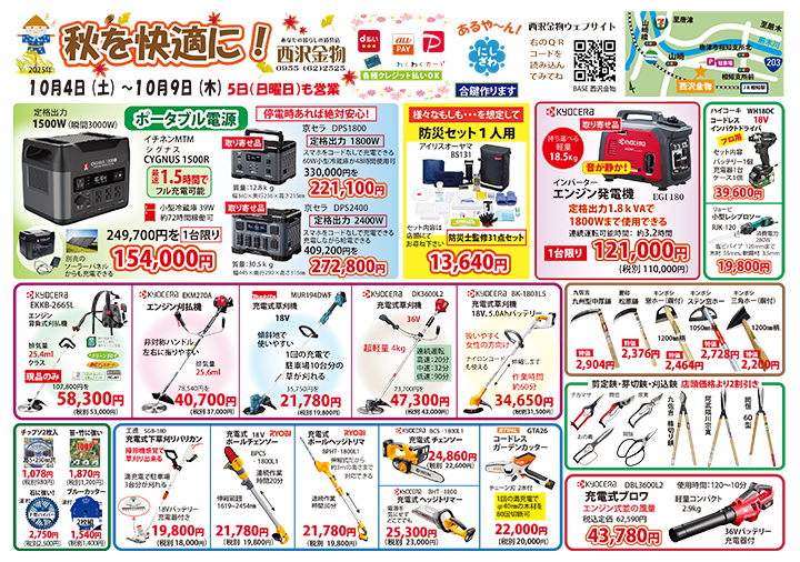 秋の特価セール開催します!10月4日~9日まで(5日の日曜日も営業します)