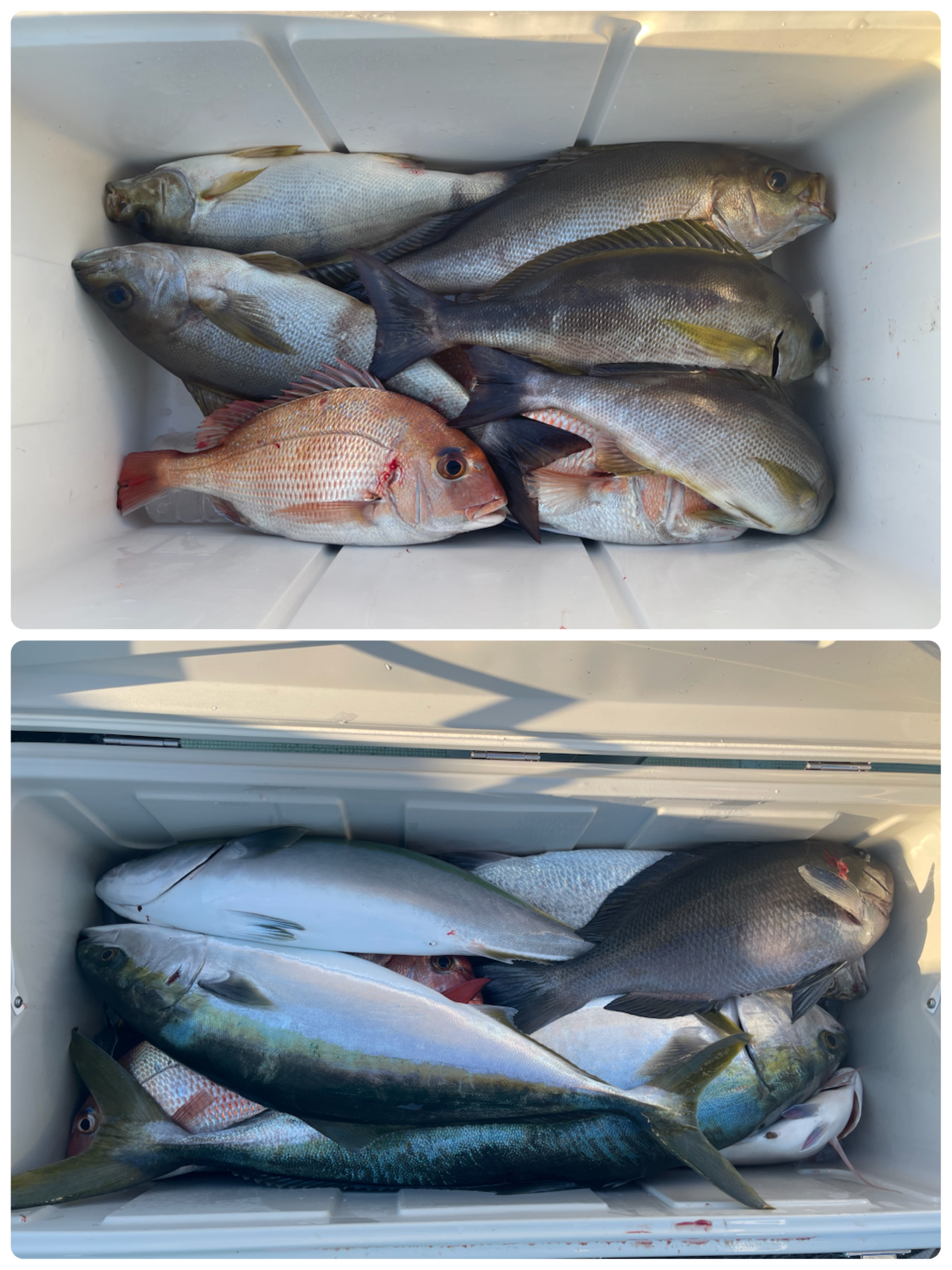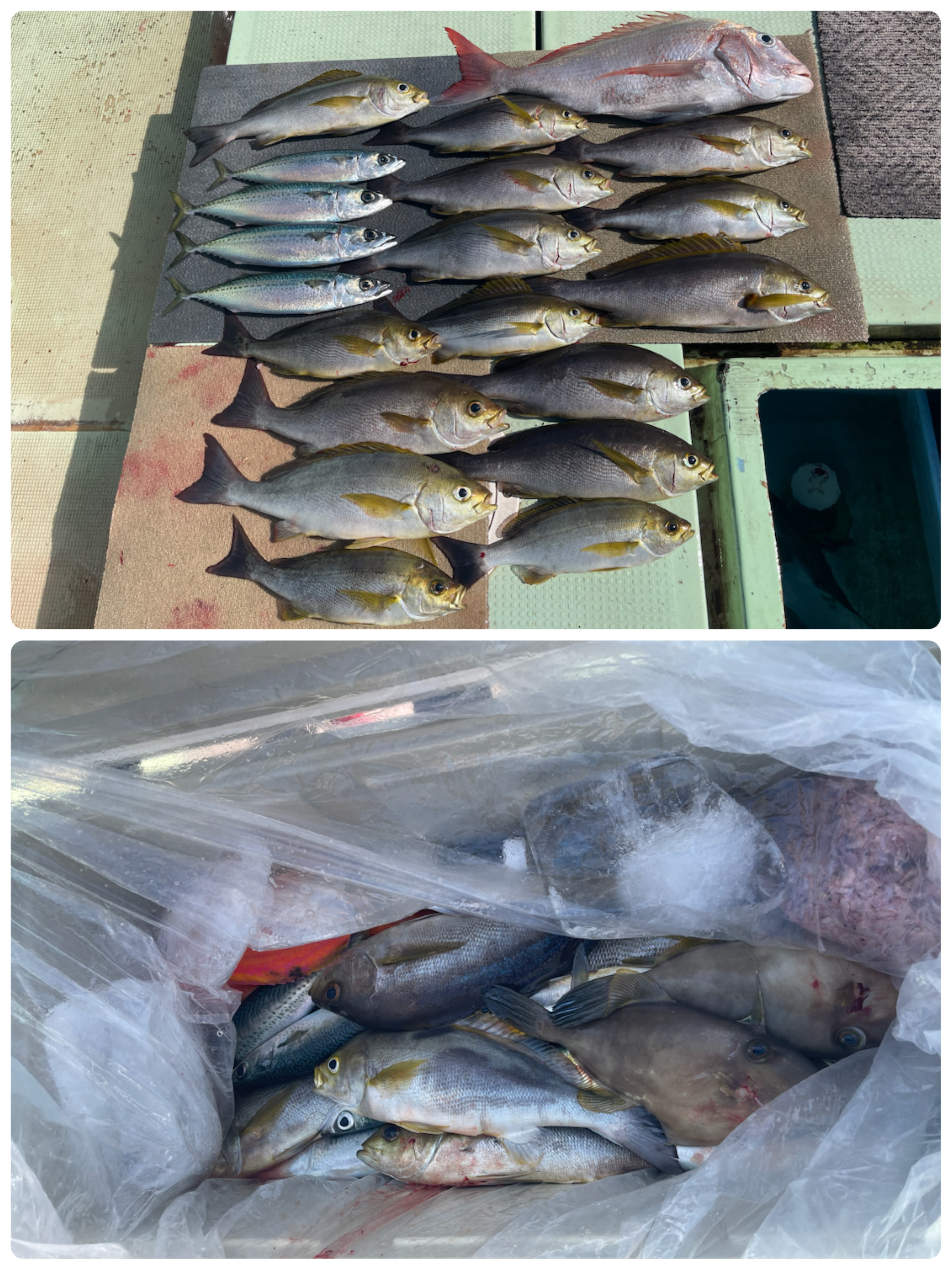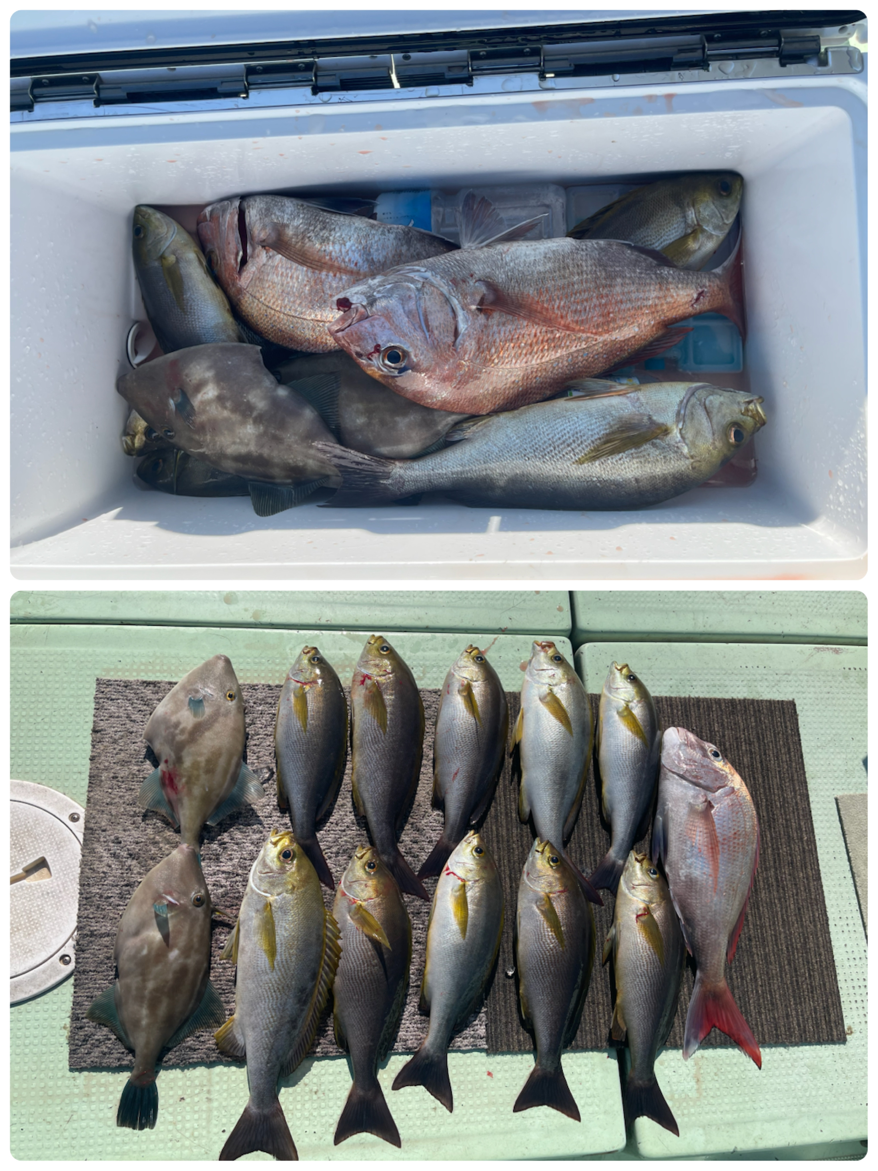 水温17.4度。前半イサキ、マダイ。後半ハマチ、ブリでした。1月ですが気温が高く凪予報の日は五目やアラカブ釣りの予定を計画します。