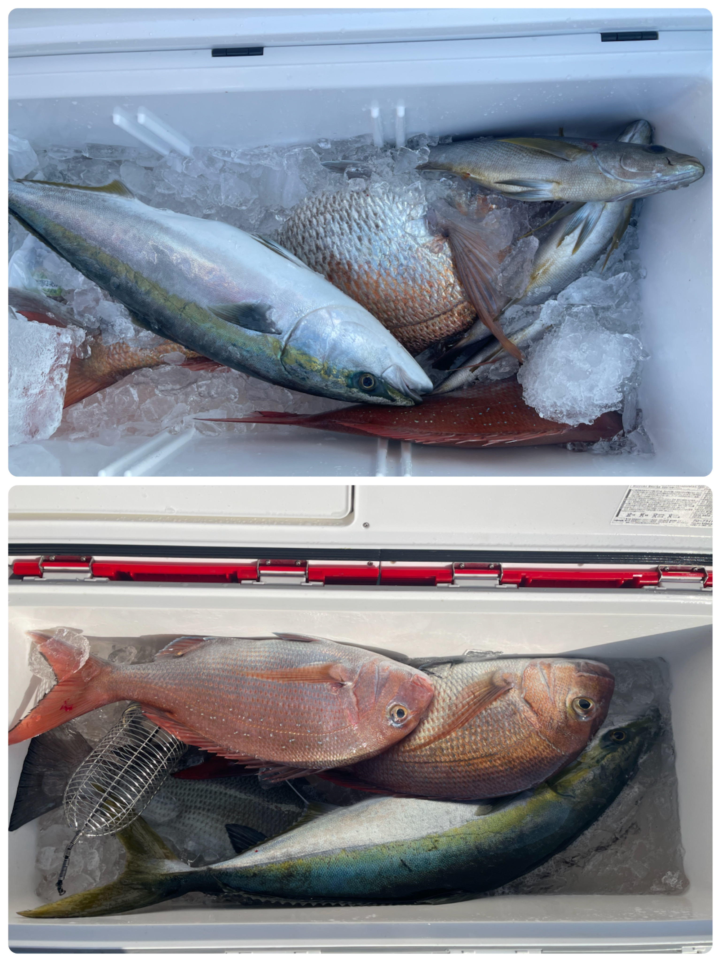 水温15.5度。マダイは抱卵している魚体もいました。立派なクロも混じりました。