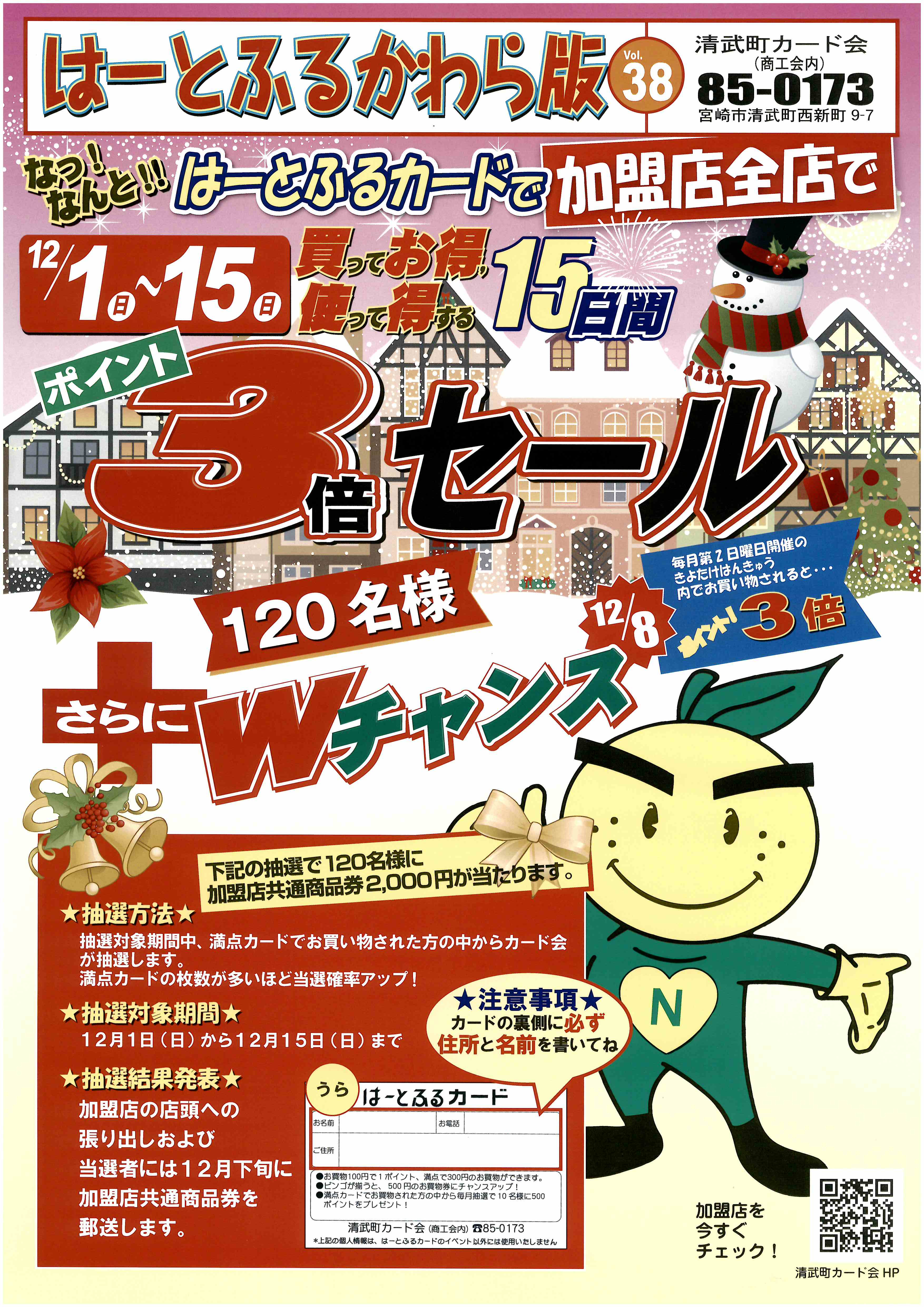 清武町カード会全加盟店では、夏に引き続き年末もポイント3倍セールを