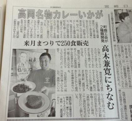 7/19付宮日新聞で紹介されました、「高岡海軍カレー」と「兼やんのカレーライスコロッケ」を8月9日~10日に開催される”たかおか夏まつり”で限定販売します!お楽しみに!