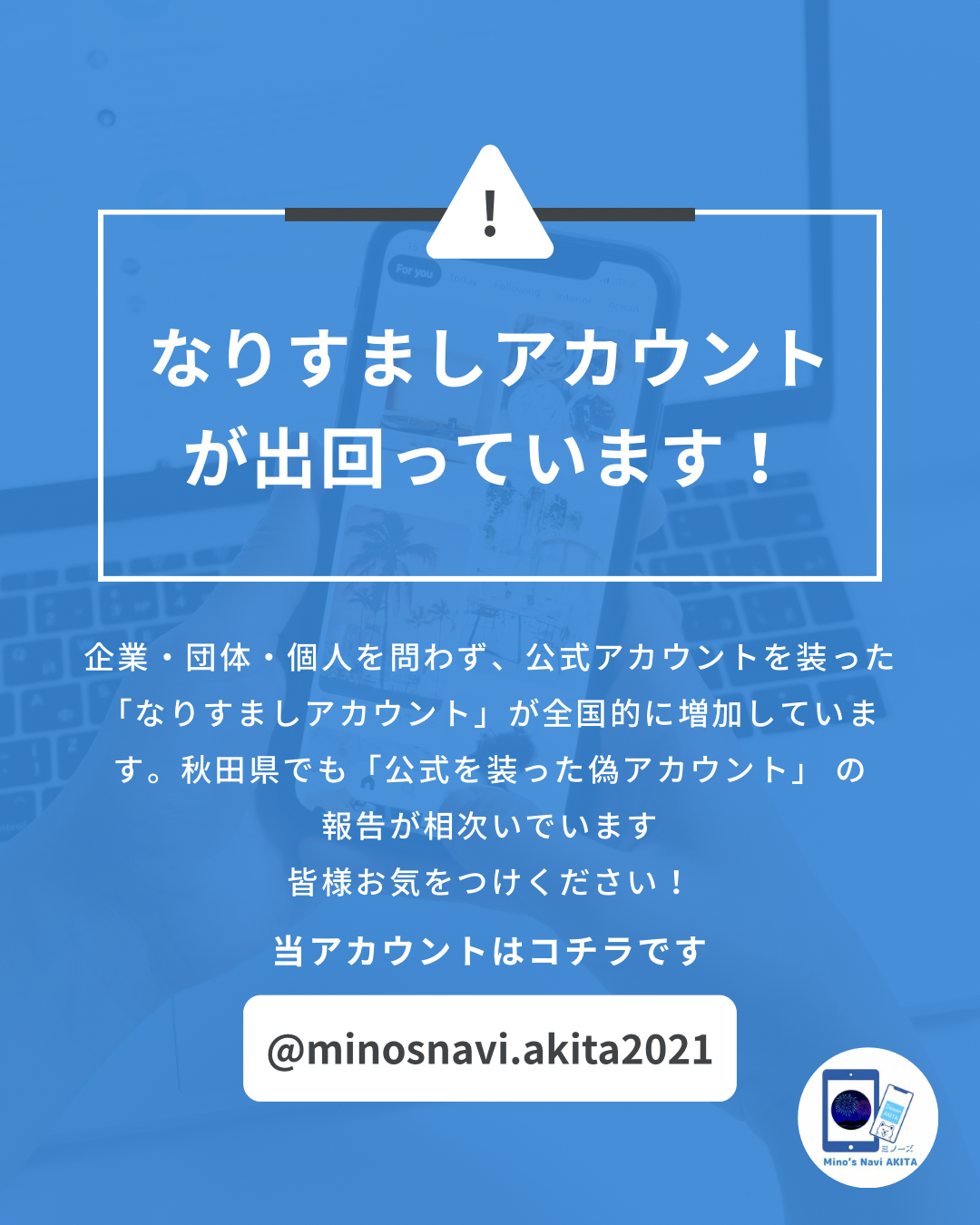 [ミノーズ Mino’s Navi AKITA] Instagramなりすましアカウントにご注意ください(秋田県内での被害増加中)