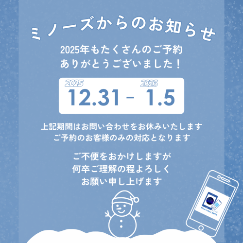 [ミノーズ Mino’s Navi AKITA] 年末年始の営業予定のお知らせ