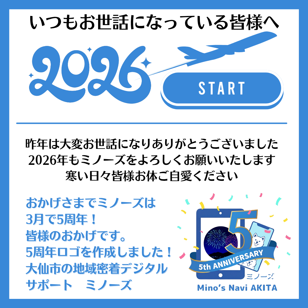 2026年もどうぞよろしくお願いいたします。地域密着のデジタルサポート【ミノーズ】 は、2026年3月で開業5周年を迎えます。これまで支えてくださった地域の皆さま、事業...