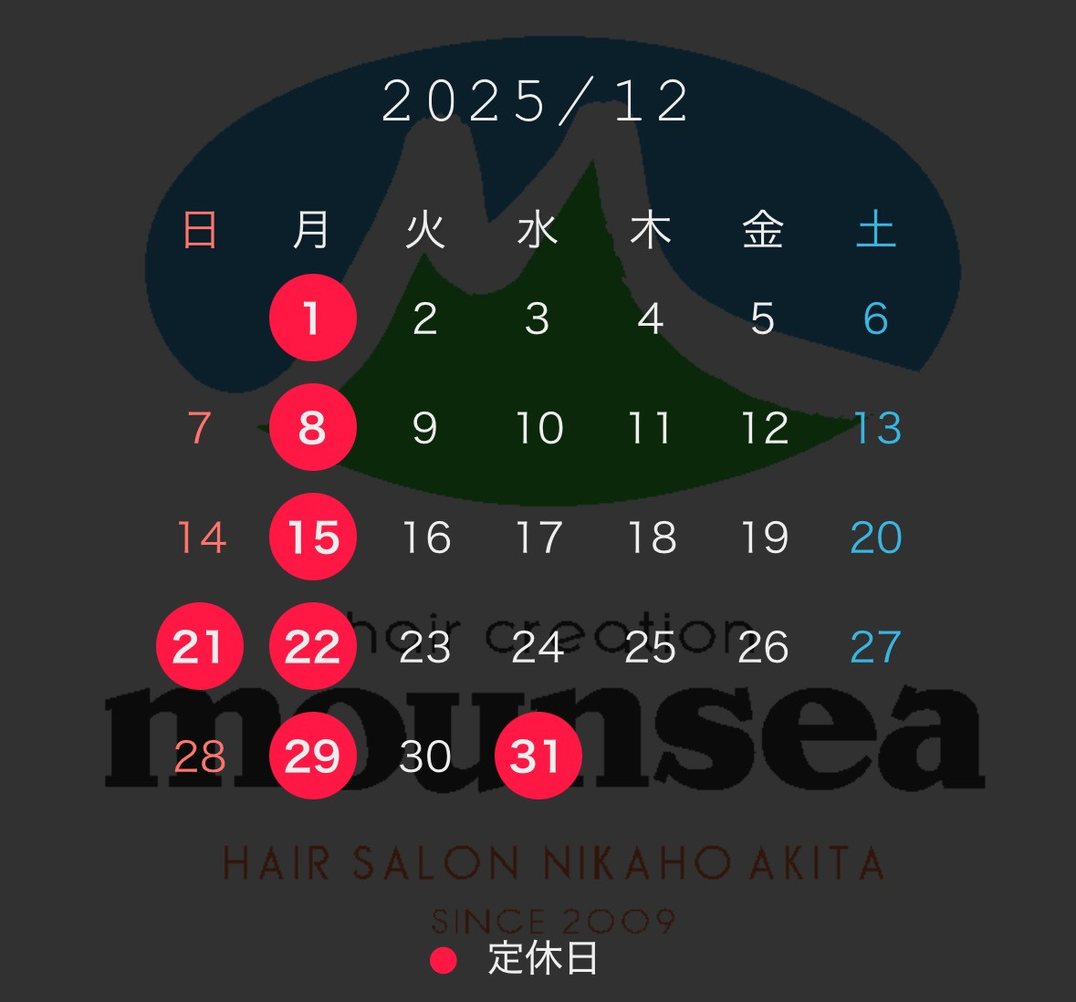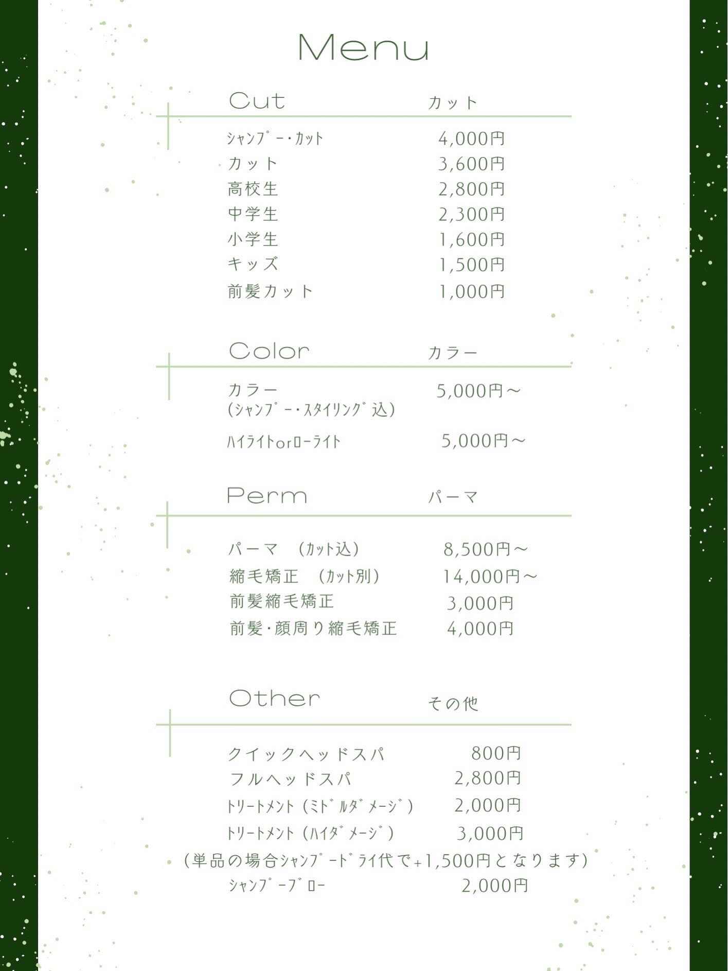 [hair creation mounsea] 価格改定のお知らせ
