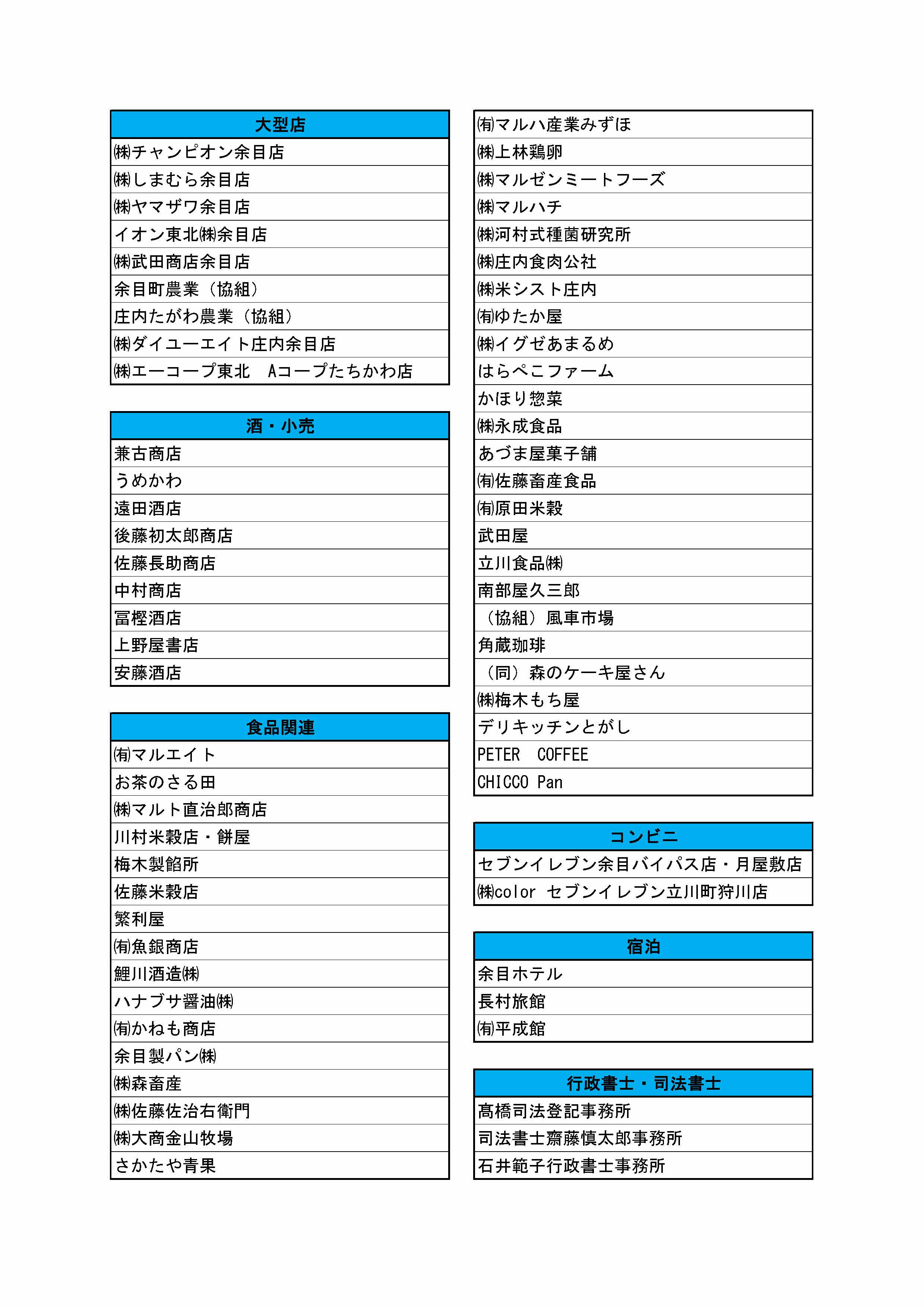 ※掲載されていない店舗につきましてはお問合せください。TEL:0234-42-2556 庄内町商工会