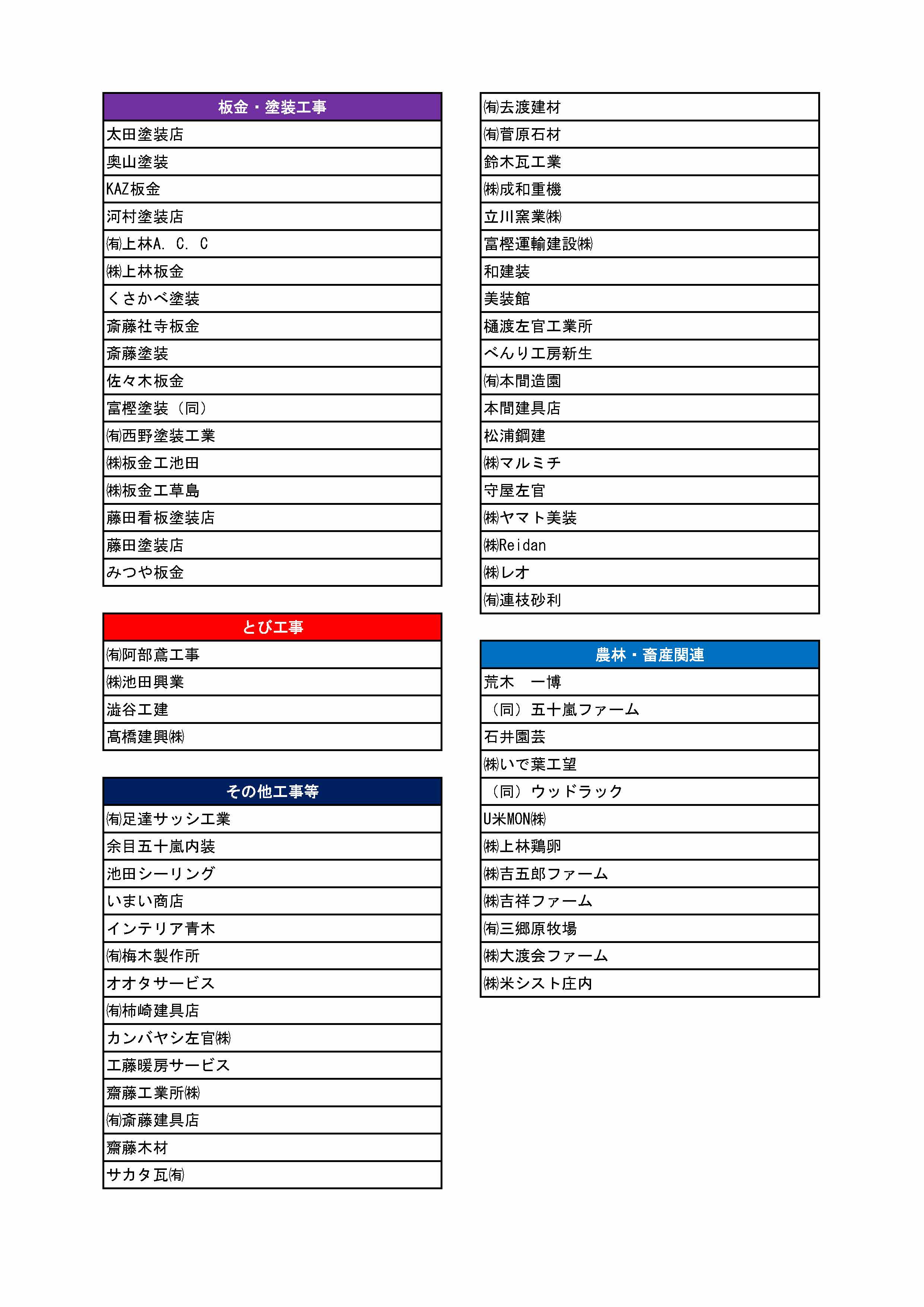 工事可能業者一覧