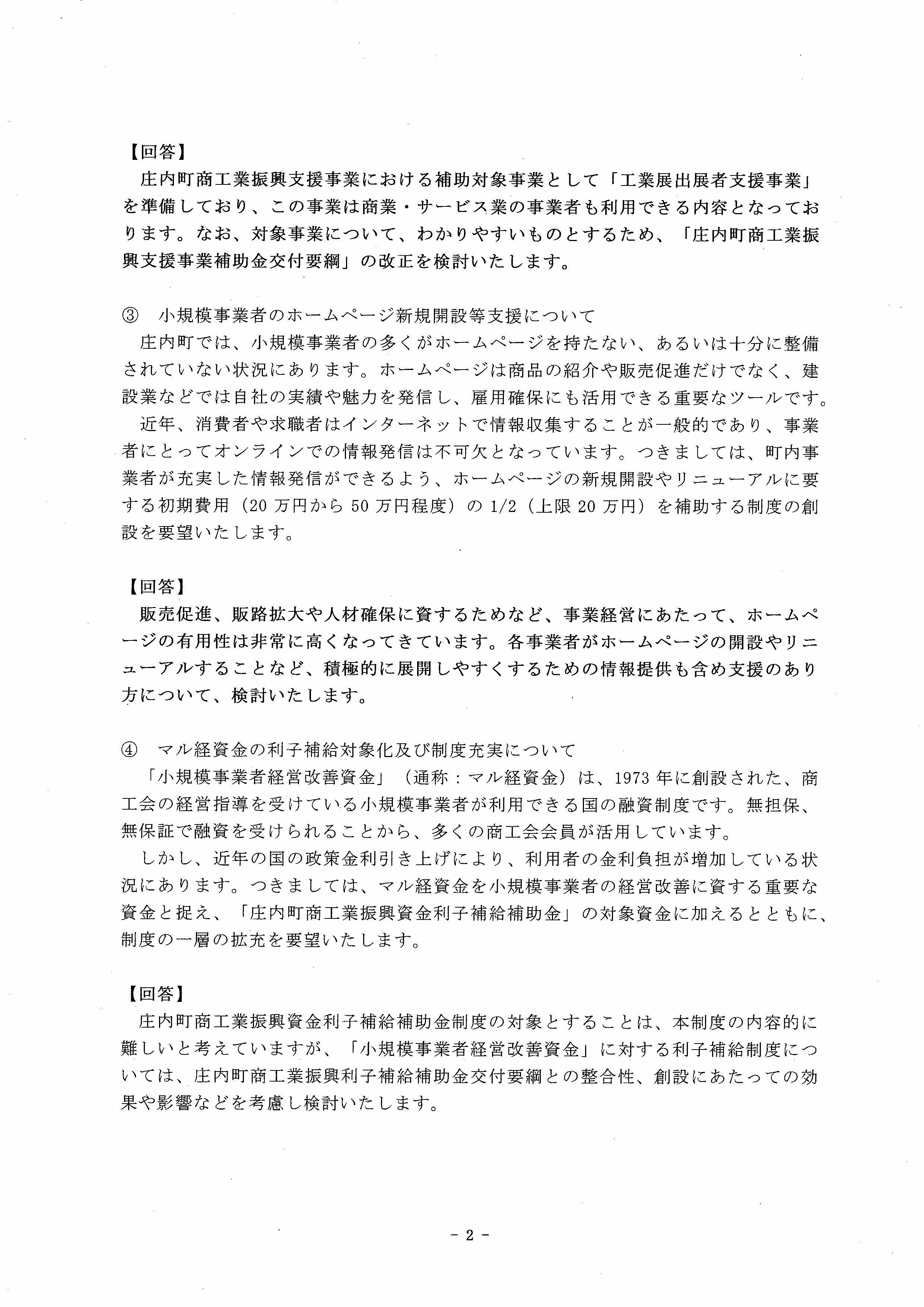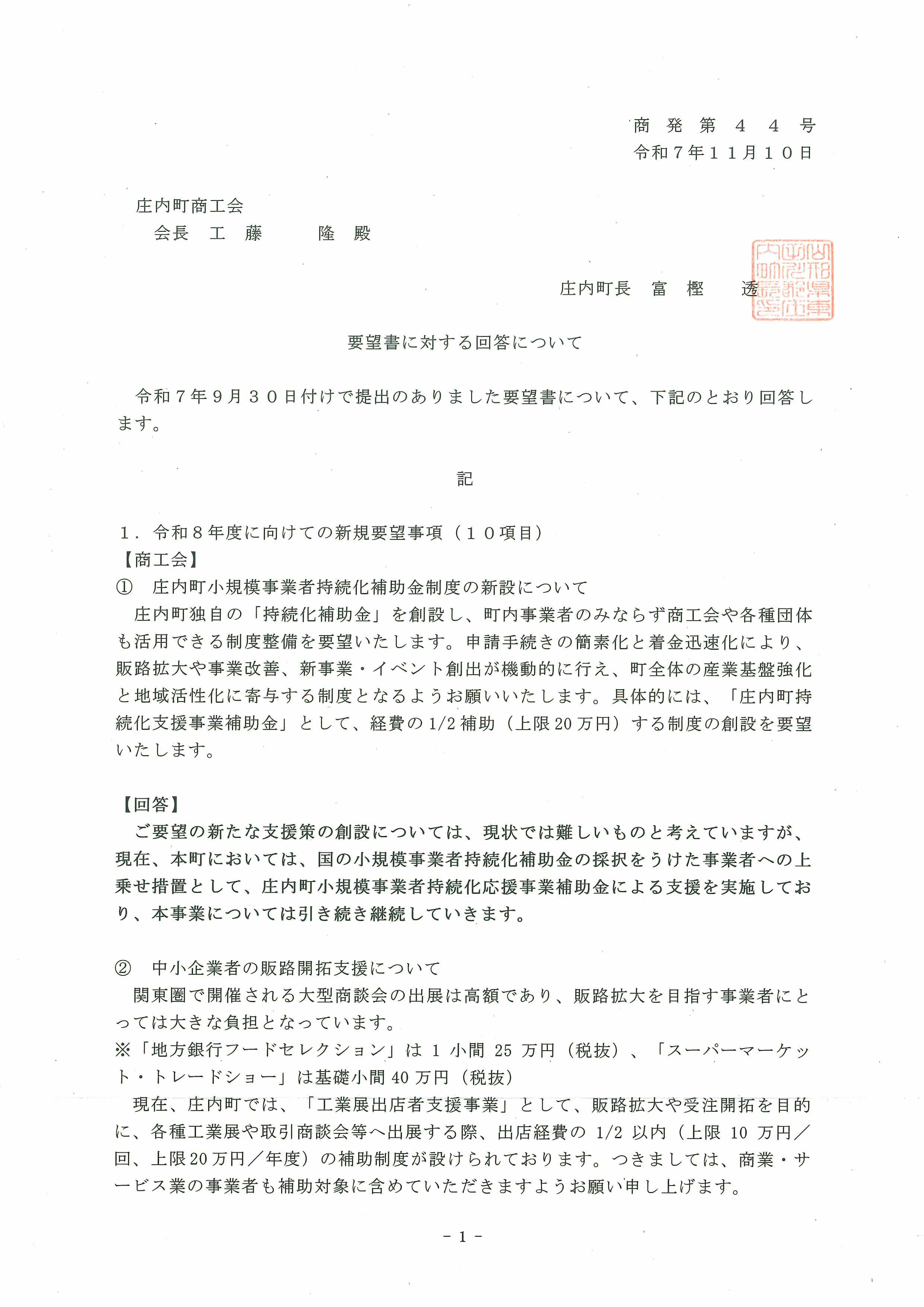 商工会から町への要望書の回答をいただきました!