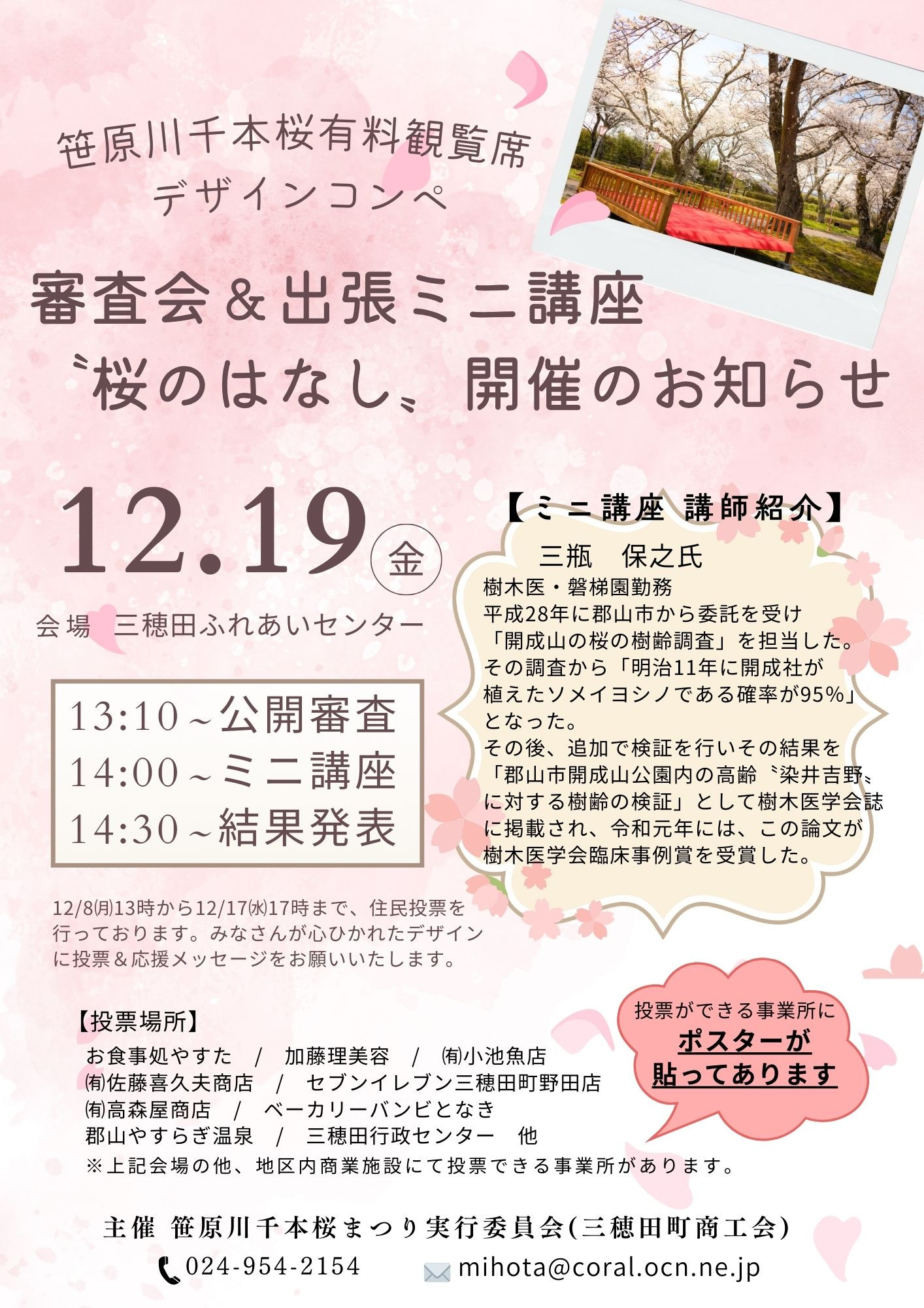 【笹原川千本桜 有料観覧席デザインコンペ】住民投票 12/8からスタート!!