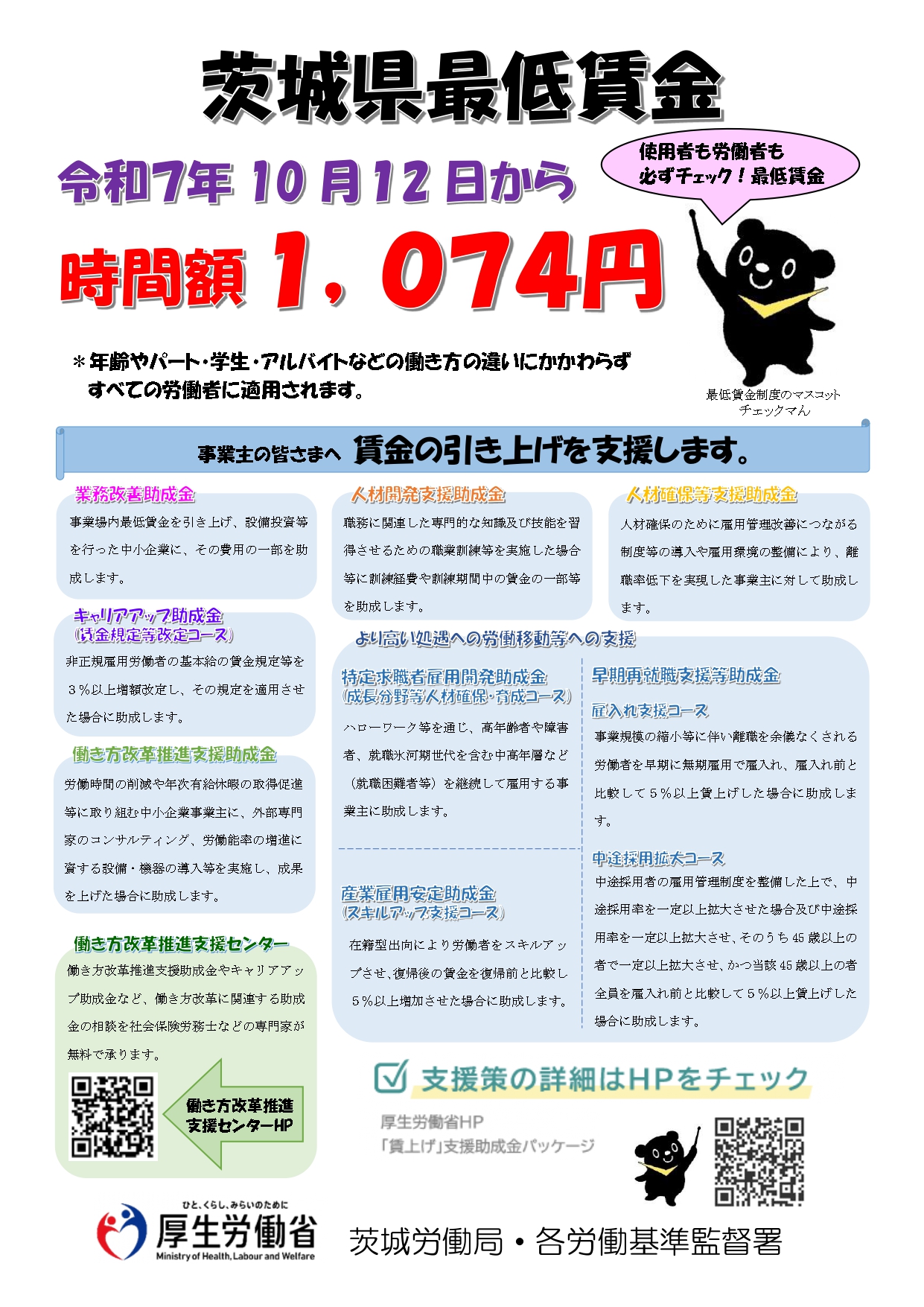 令和7年10月12日から茨城県の最低賃金が変わります。