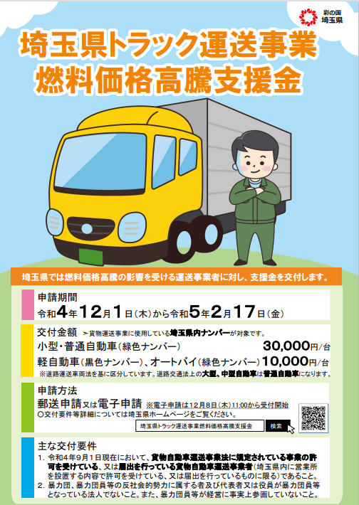 埼玉県トラック運送事業燃料価格高騰支援金事業について