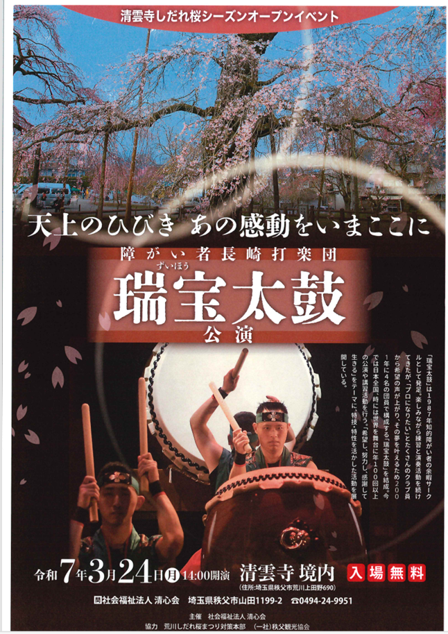 今年も清雲寺しだれ桜開花時に合わせて境内で催しものを行います。