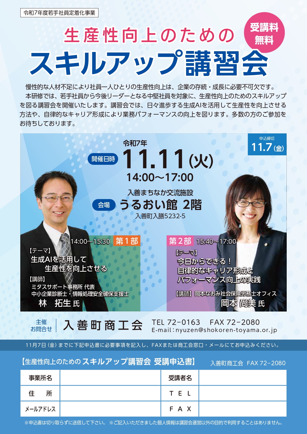 ▶申込方法:下記チラシより、必要事項をご記入の上11月13日(木)までに商工会FAX又は窓口・メールにてお申し込み下さい。