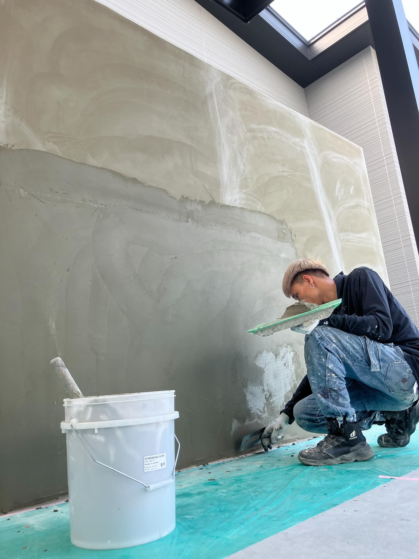弊社では地震に強い発泡スチロール塀「装飾塀」の設置から施工までを一貫して行っております(^^♪塀の中身は特殊な発泡スチロール。写真はコテを使って下塗り中の様子で...